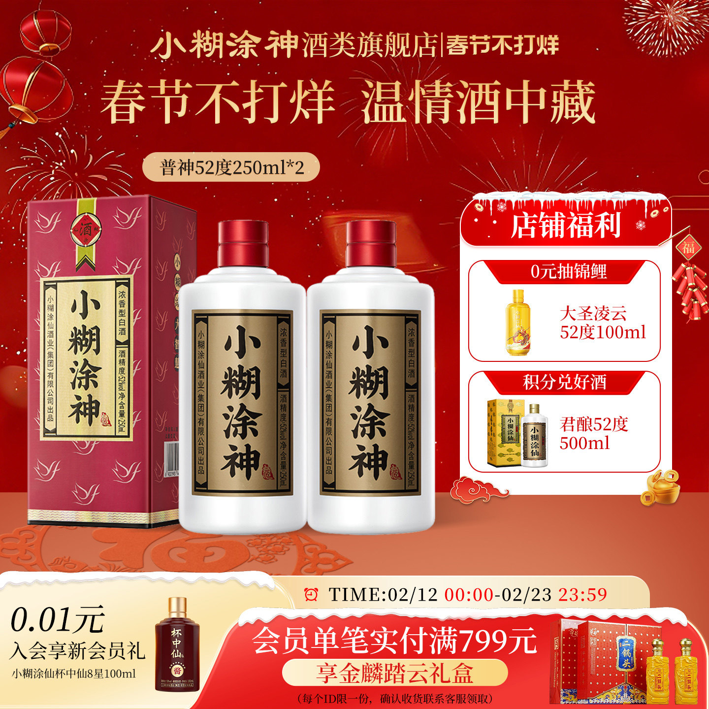 📚 小糊涂神(普神)52度250ml*2瓶装浓香型白酒自饮聚会小酒正品
