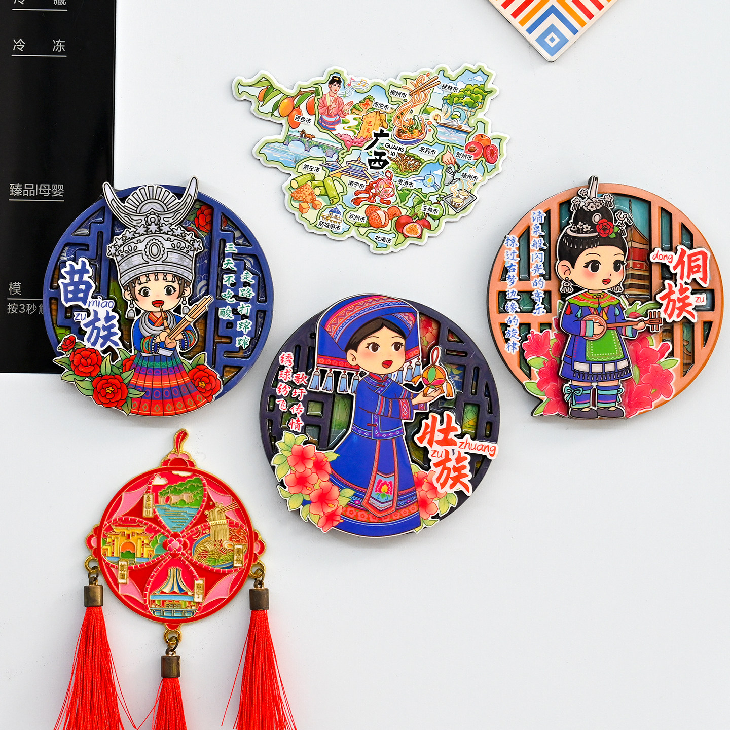 📚 广西壮族苗族侗族服饰木质冰箱贴旅游纪念品民族文化创意小礼品