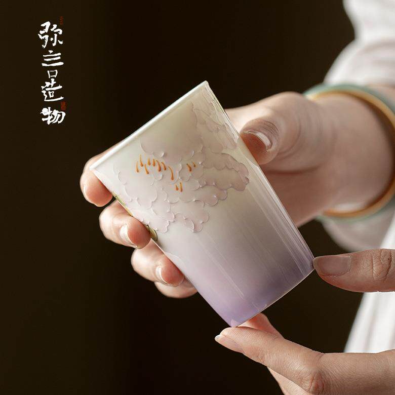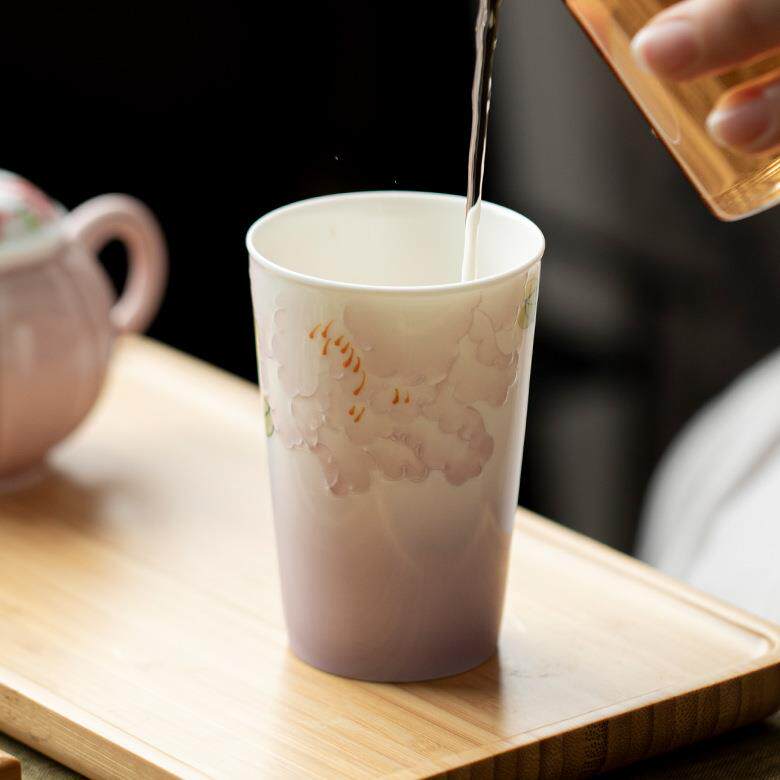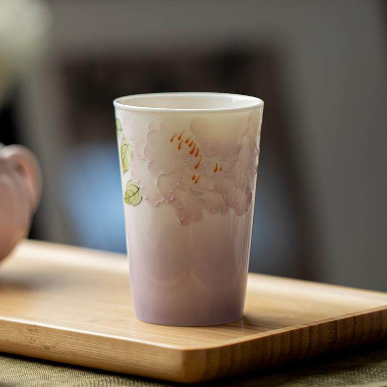 📚 弥言十二花神手绘牡丹花可乐杯手工陶瓷家用大号茶杯马克杯手握杯