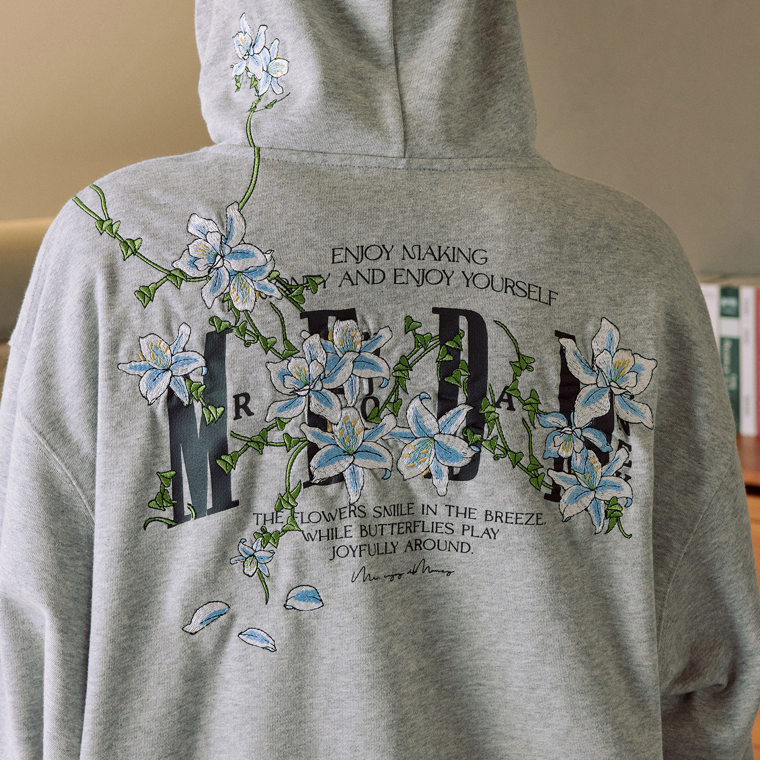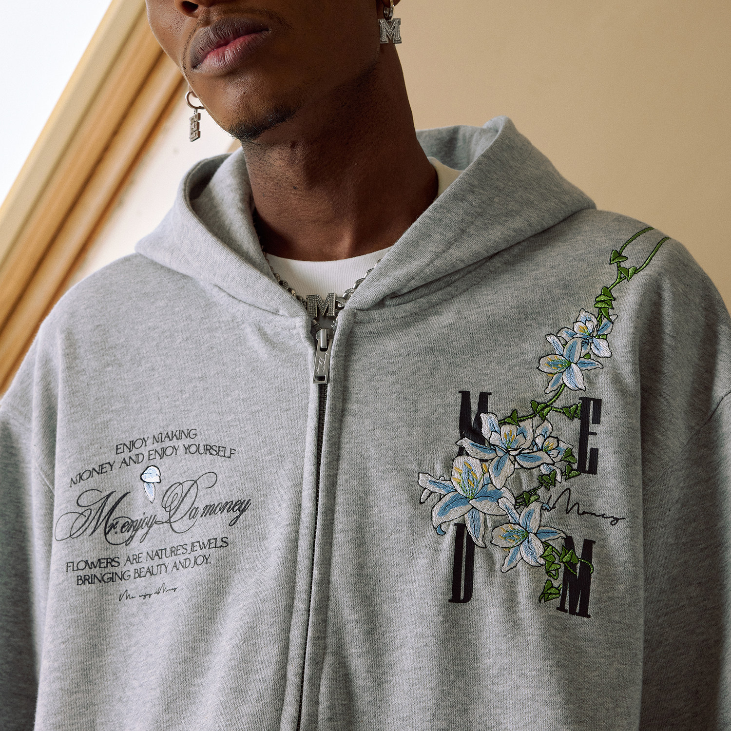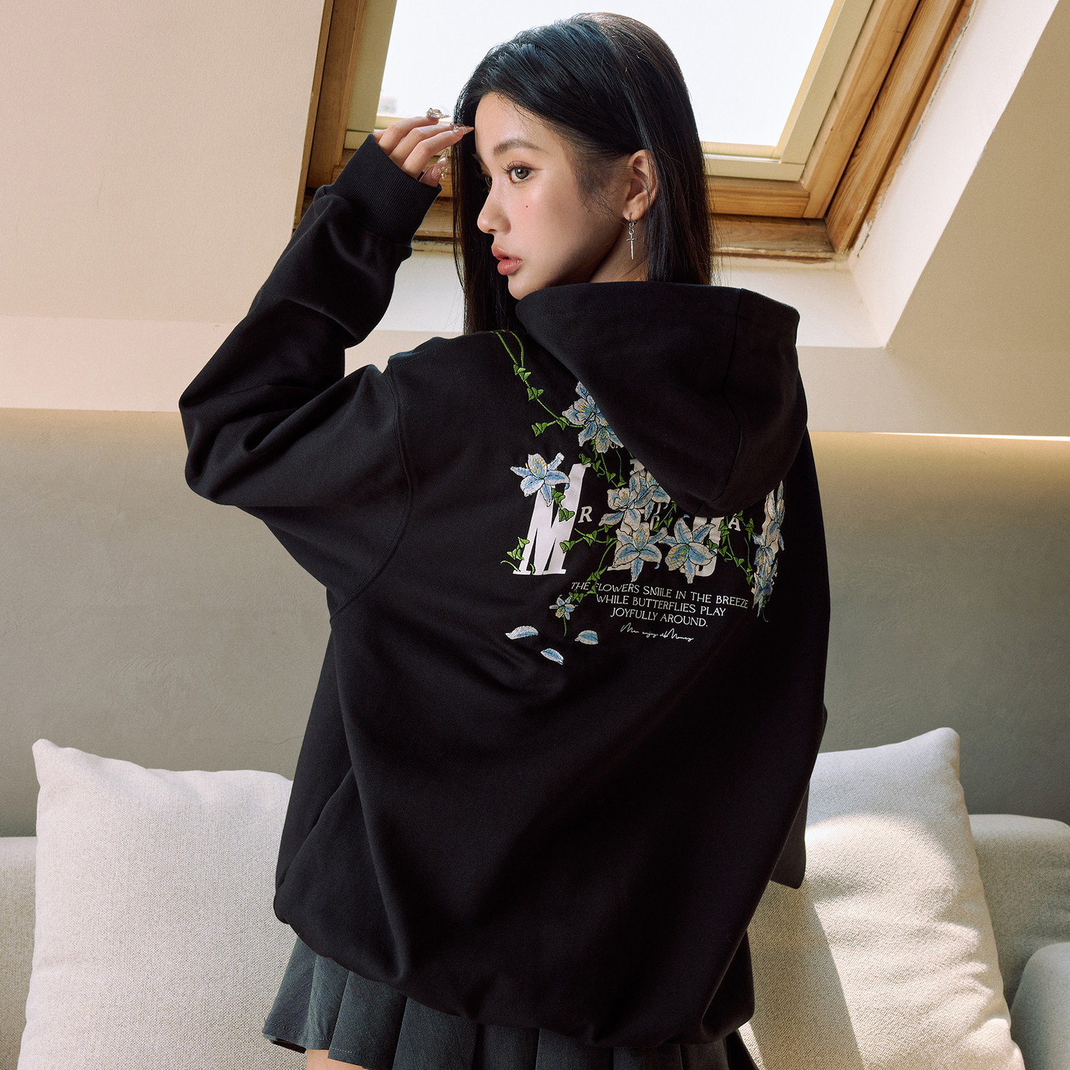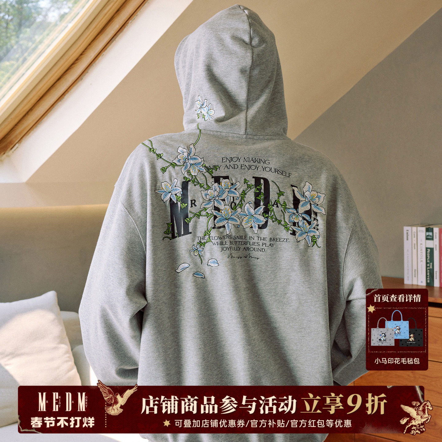 📚 MEDM 藤蔓花卉刺绣拉链帽衫男女春秋季百搭连帽卫衣休闲宽松外套