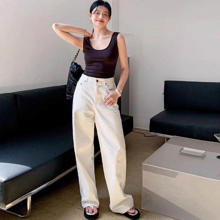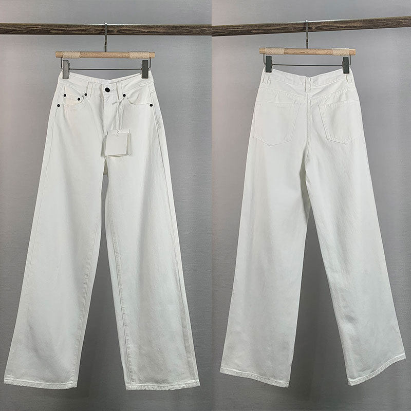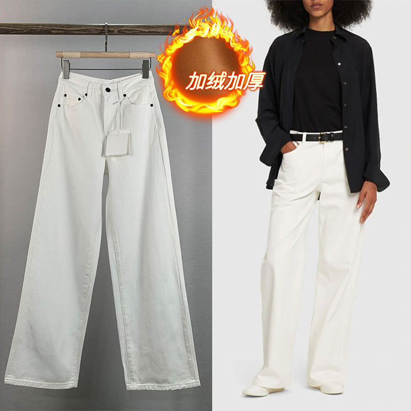📚 THE直筒超好看的加绒白色牛仔拖地长裤子女款高腰2025新爆款薄绒