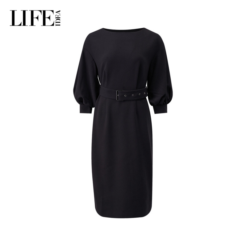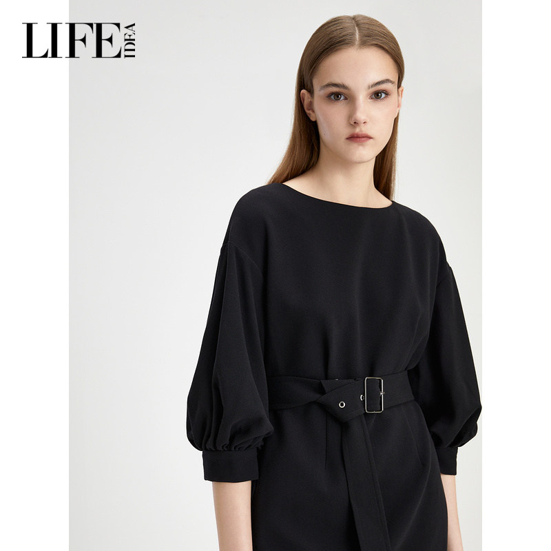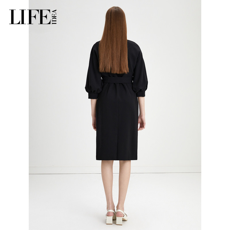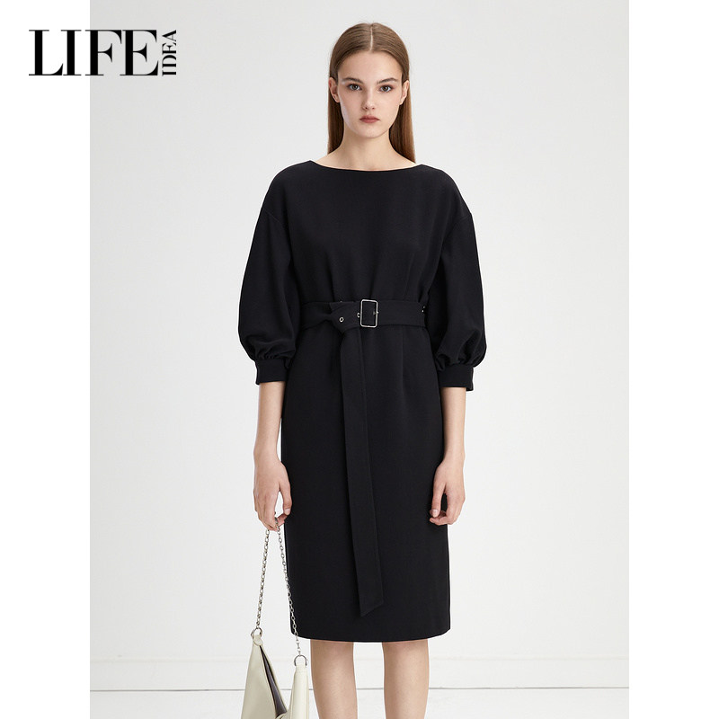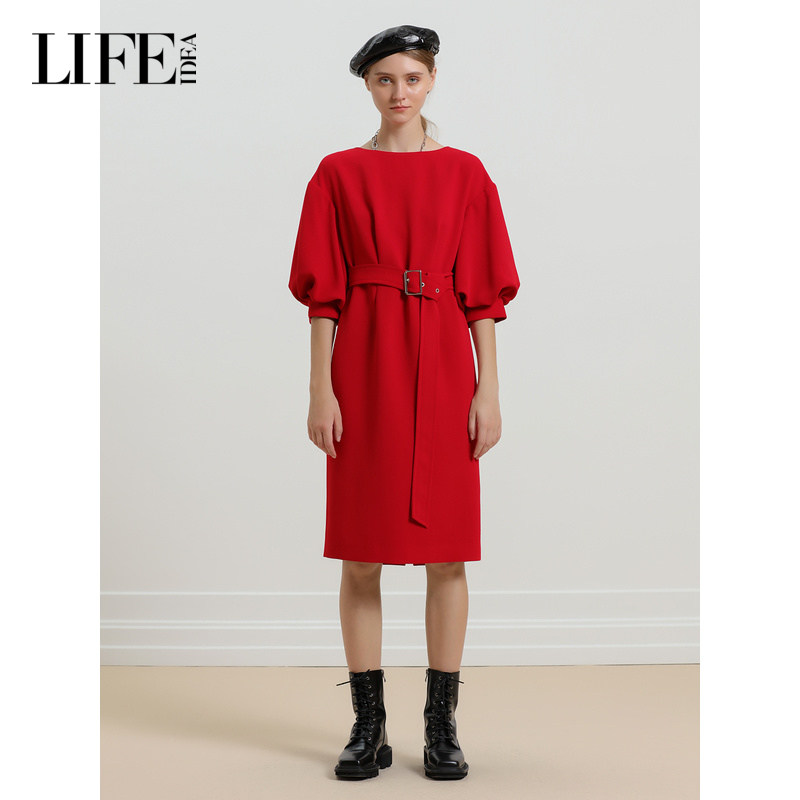 📚 莱芙·艾迪儿秋冬新款轻礼服感泡泡袖连衣裙收腰中袖气质裙子