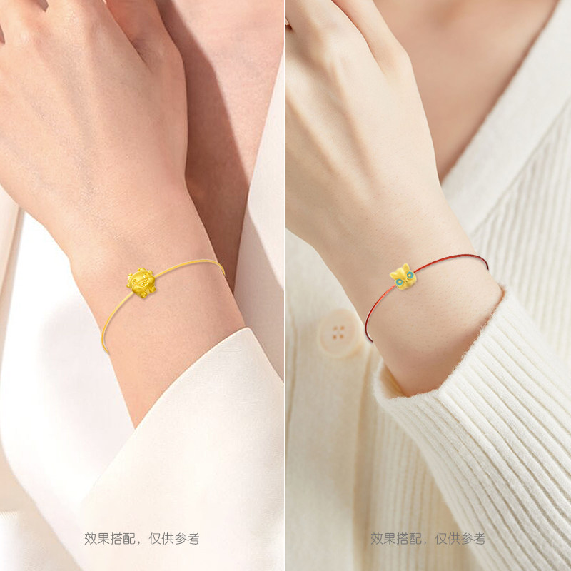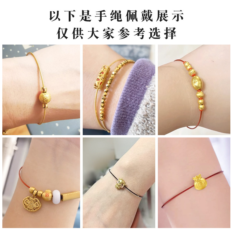 📚 细款钢丝手绳女1毫米金红色穿小孔转运珠编织皮绳手链本命年红绳