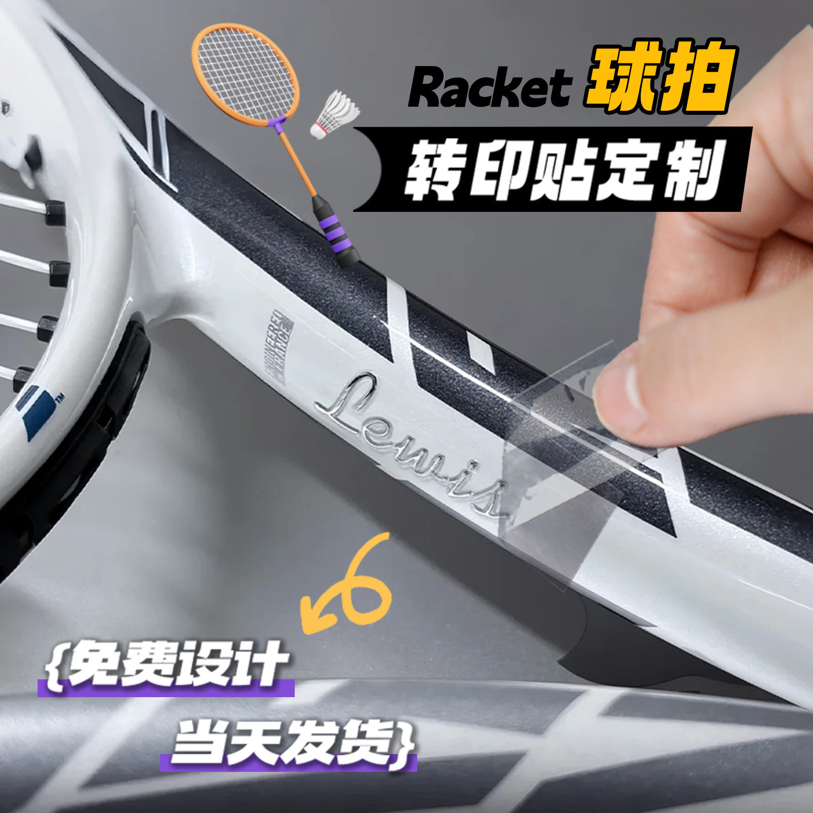 📚 球拍贴纸定制uv转印贴羽毛球杆装饰防水金属标签底盖立体水晶标贴