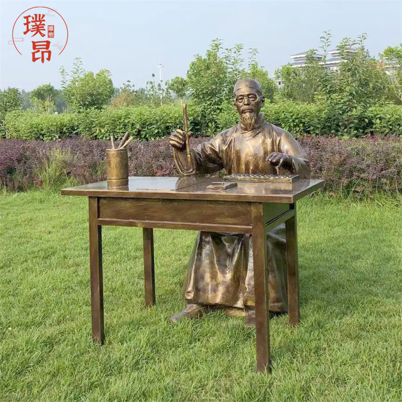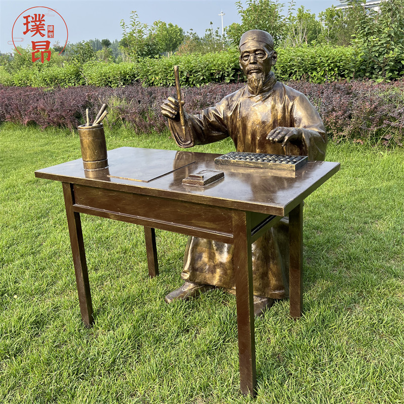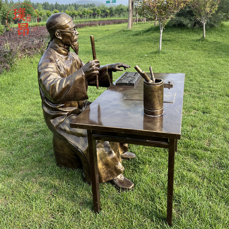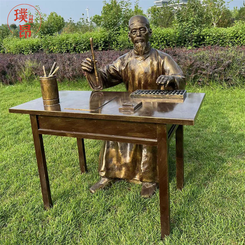📚 店掌柜记账玻璃钢雕塑账房先生算账仿铜古代人物雕像写字铜像定制