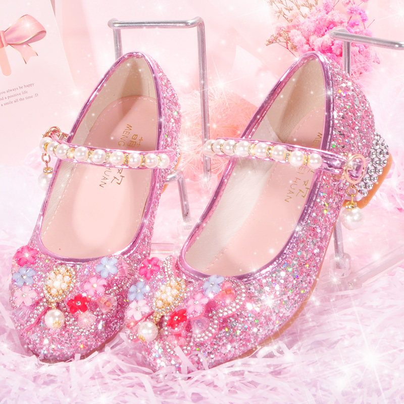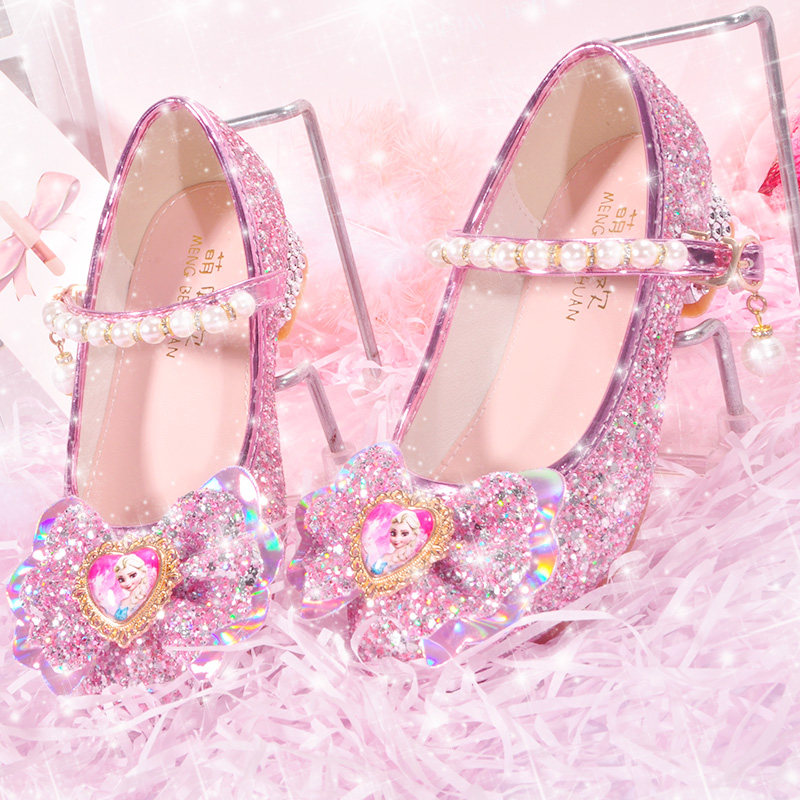 📚 公主鞋女童水晶鞋儿童高跟鞋小女孩中大童鞋爱莎配礼服亮晶晶鞋子