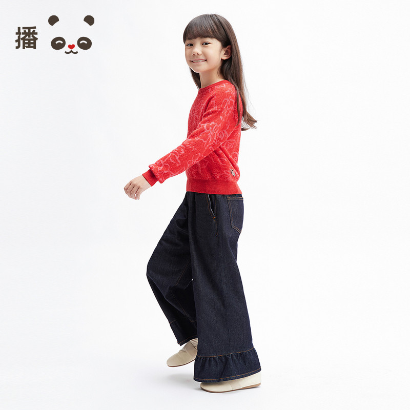 📚 播broadcute童装2025春新款女童针织衫新年红套头毛衣KGS1SD0217