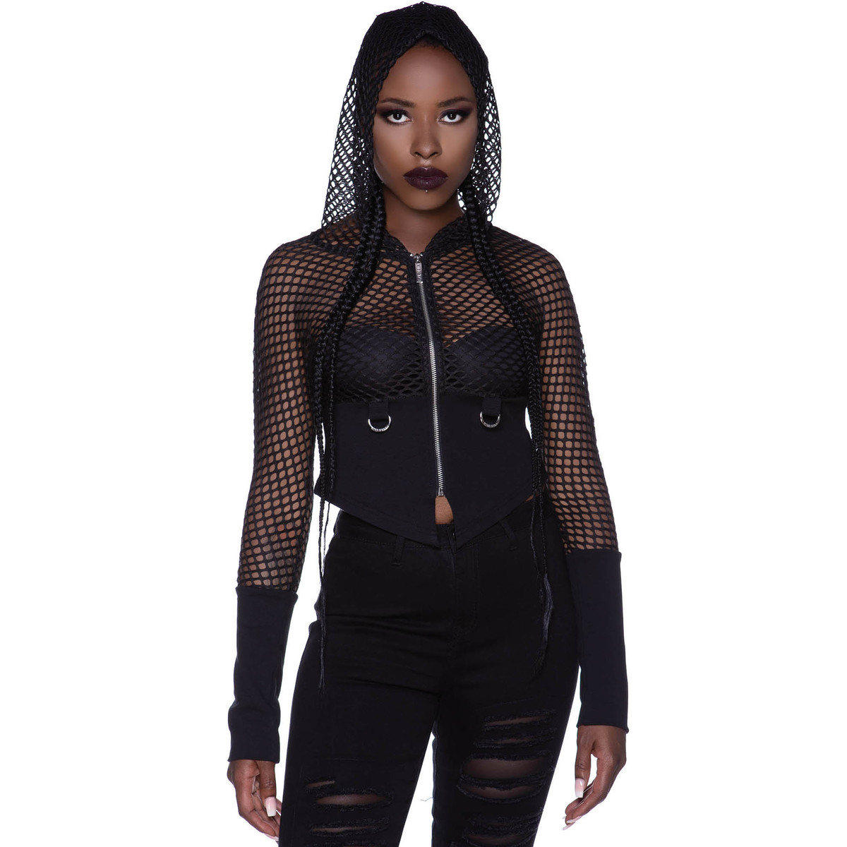 📚 KILLSTAR暗黑哥特Wicked朋克街头亚文化渔网拼接连帽搭配短外套