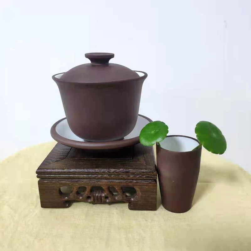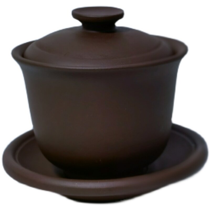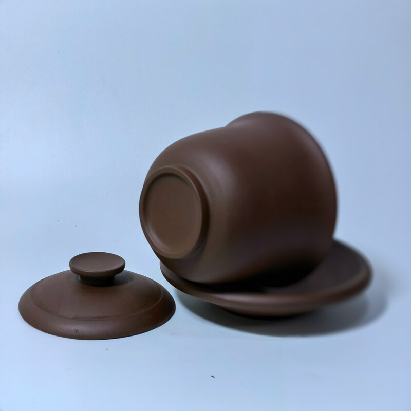 📚 宜兴原矿老紫泥油性充盈150cc三件套盖碗三才碗90年代茶碗主人杯