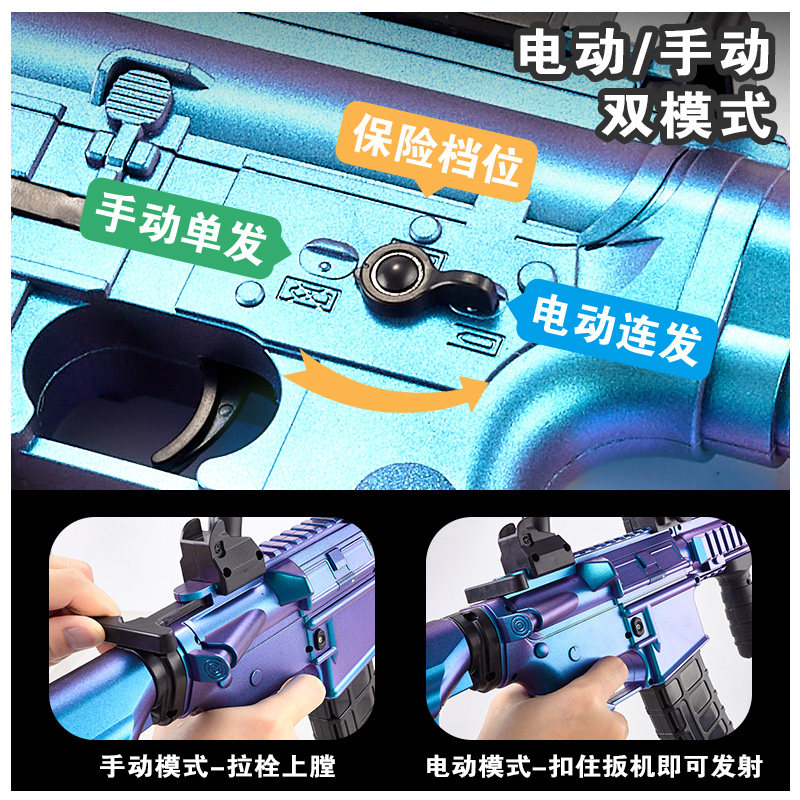 📚 M416全自动突击水晶黑鹰电动连发男孩儿童玩具手自一体软弹枪专用