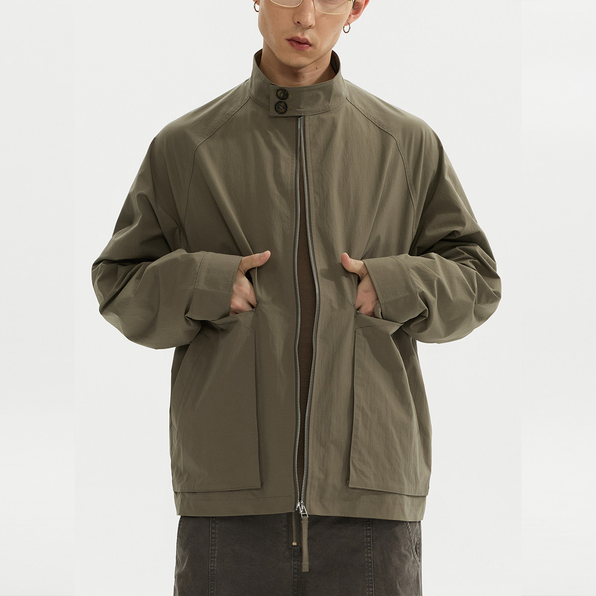 📚 ESAT 双色哈灵顿连肩袖大口袋廓形夹克外套