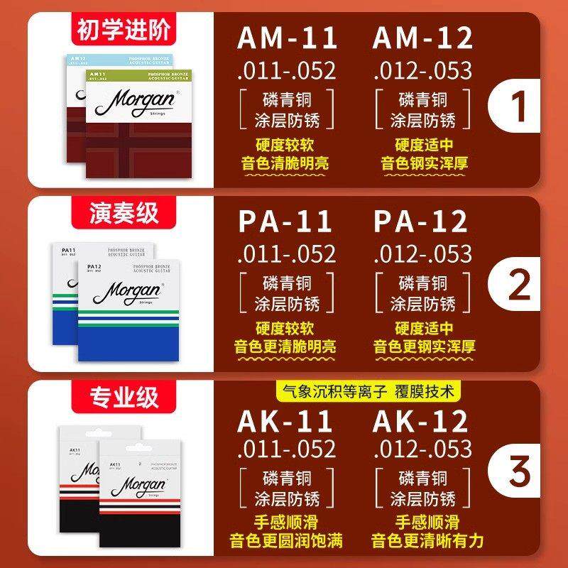 📚 摩根吉他琴弦民谣吉他弦全套演奏木吉他弦一套六根镀膜磷铜吉他弦