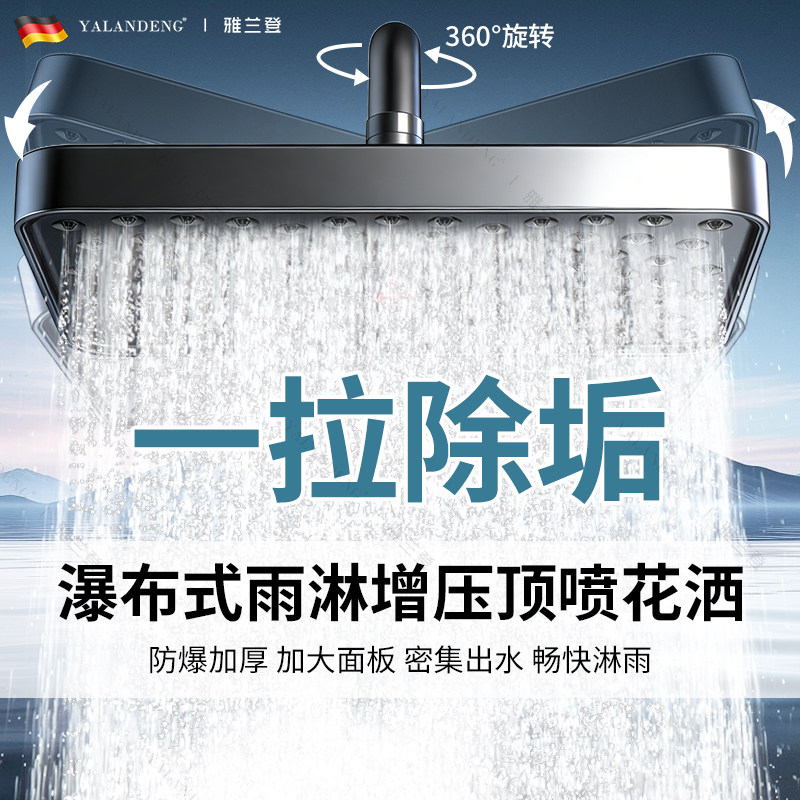 📚 德国自动除垢顶喷大花洒喷头淋浴增压头顶莲蓬头浴室沐浴洗澡配件