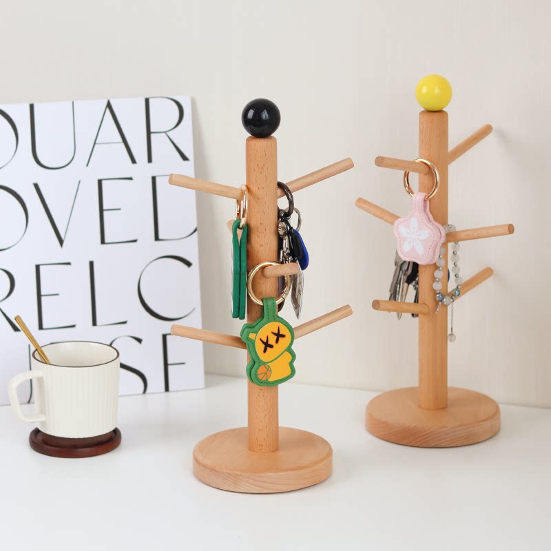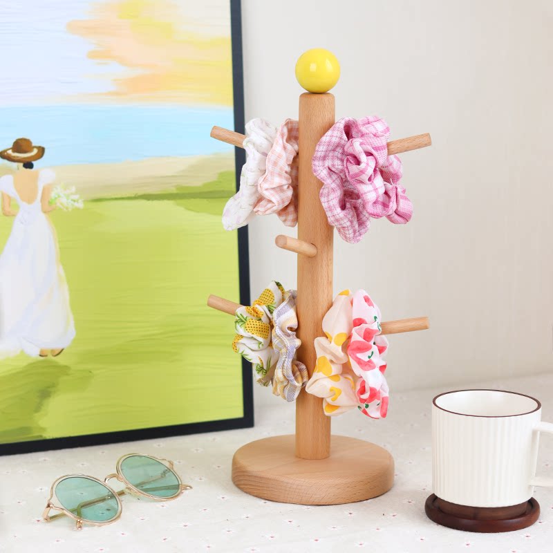 📚 桌面大肠发圈收纳架手串项链发箍置物架实木玄关钥匙挂架展示架子