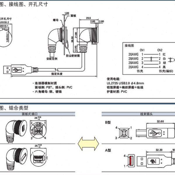 📚 弯头0穿350母座转接头M型D板9SD安装面板22mm连接线09USB转接线孔