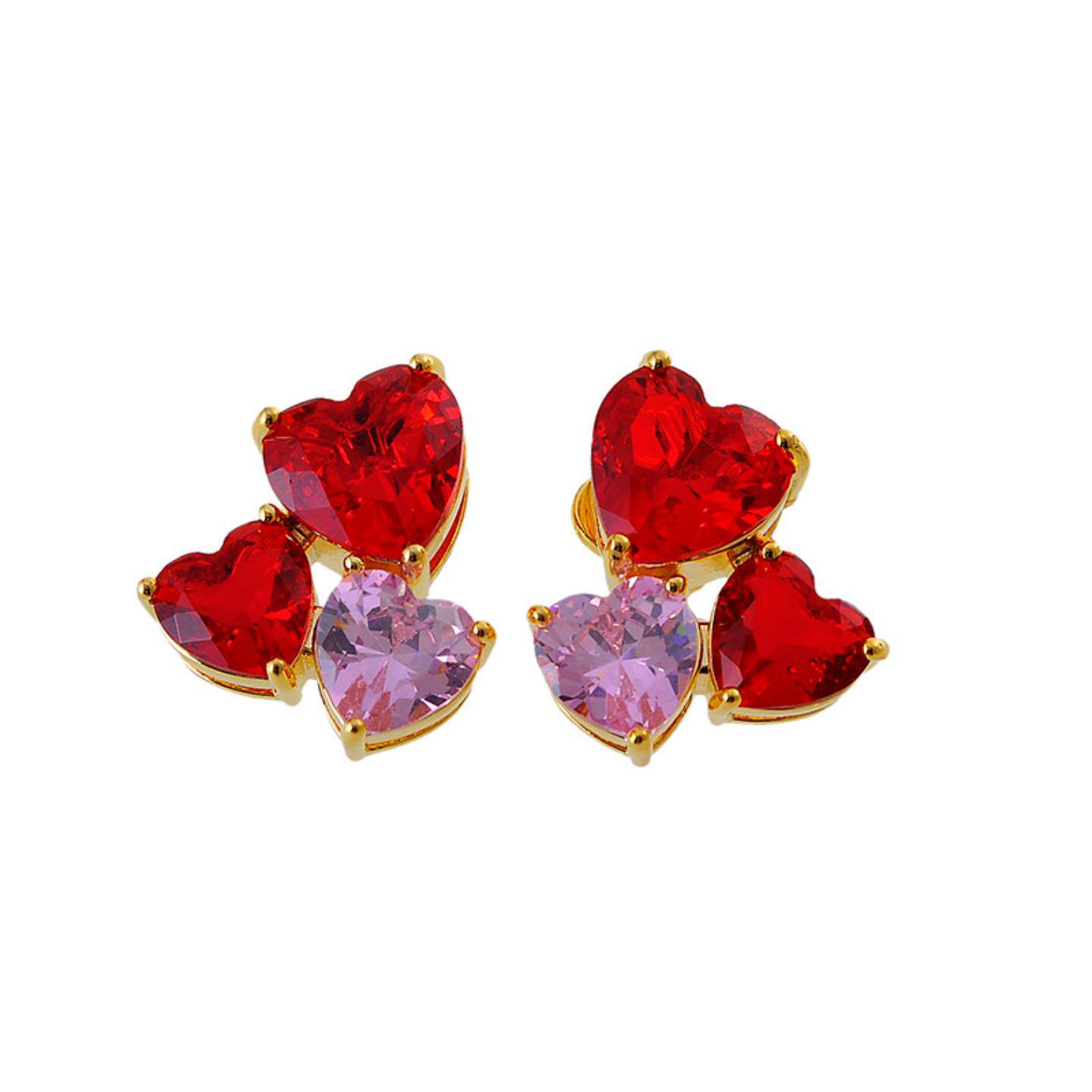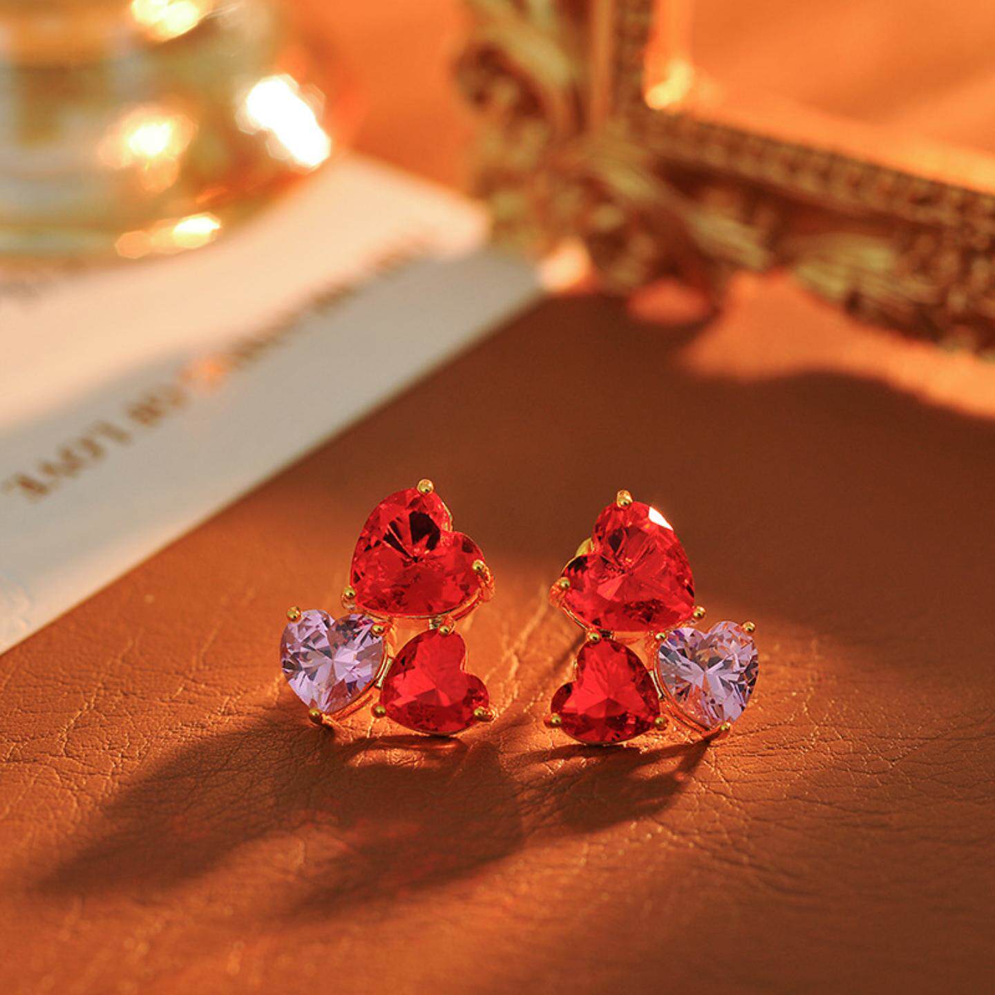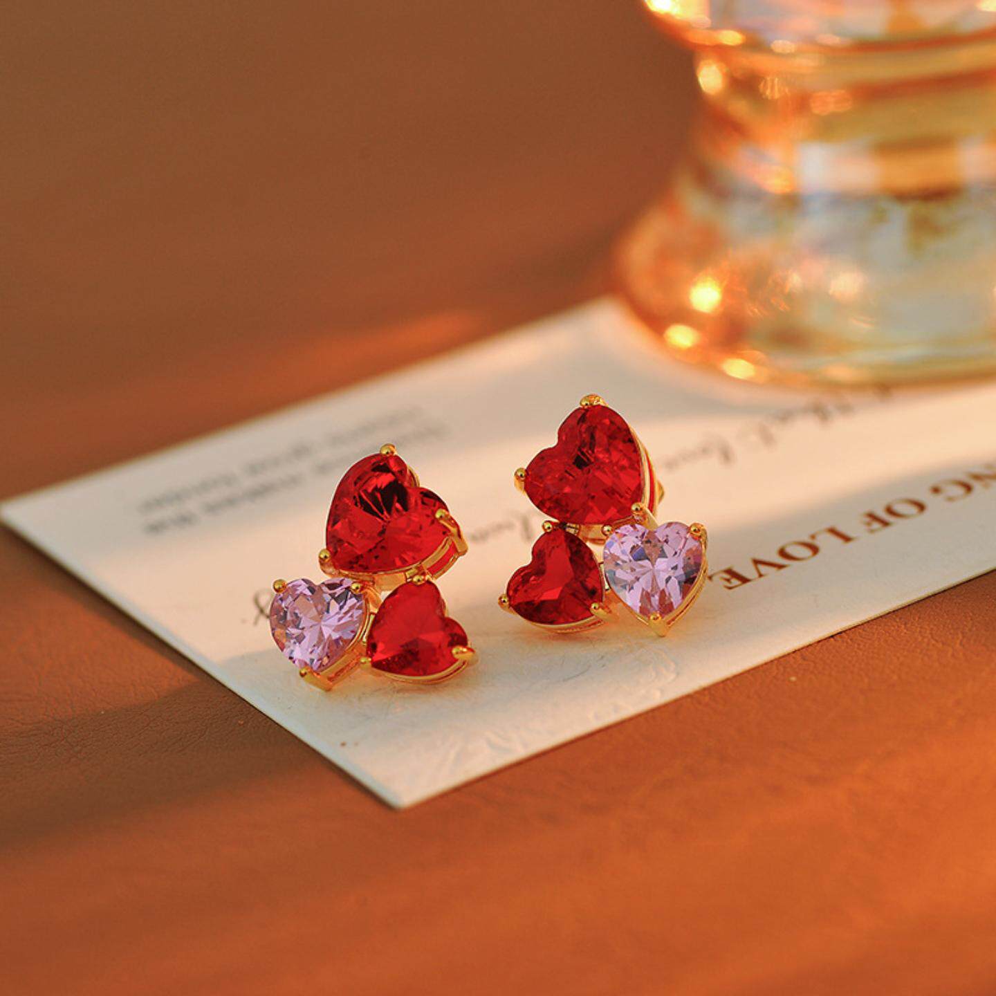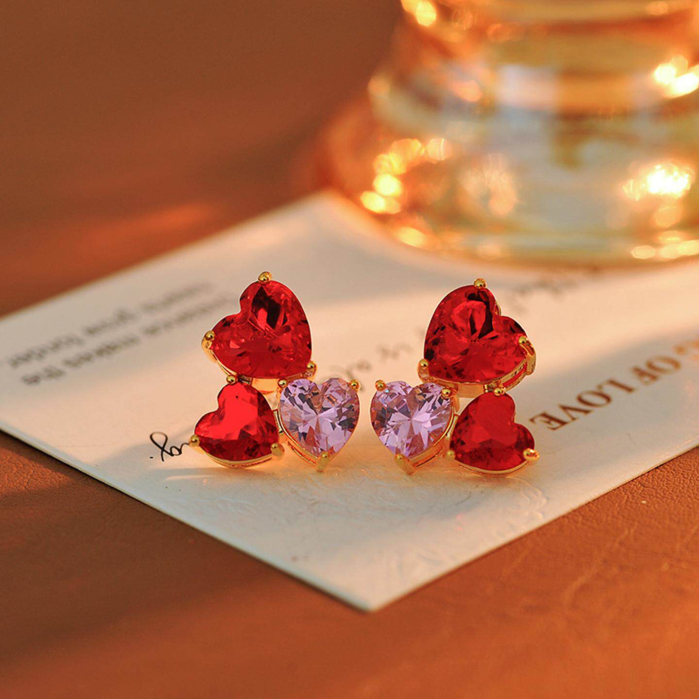 📚 ks拼色甜美爱心造型S925银针耳钉女轻奢锆石立体高级感耳环女