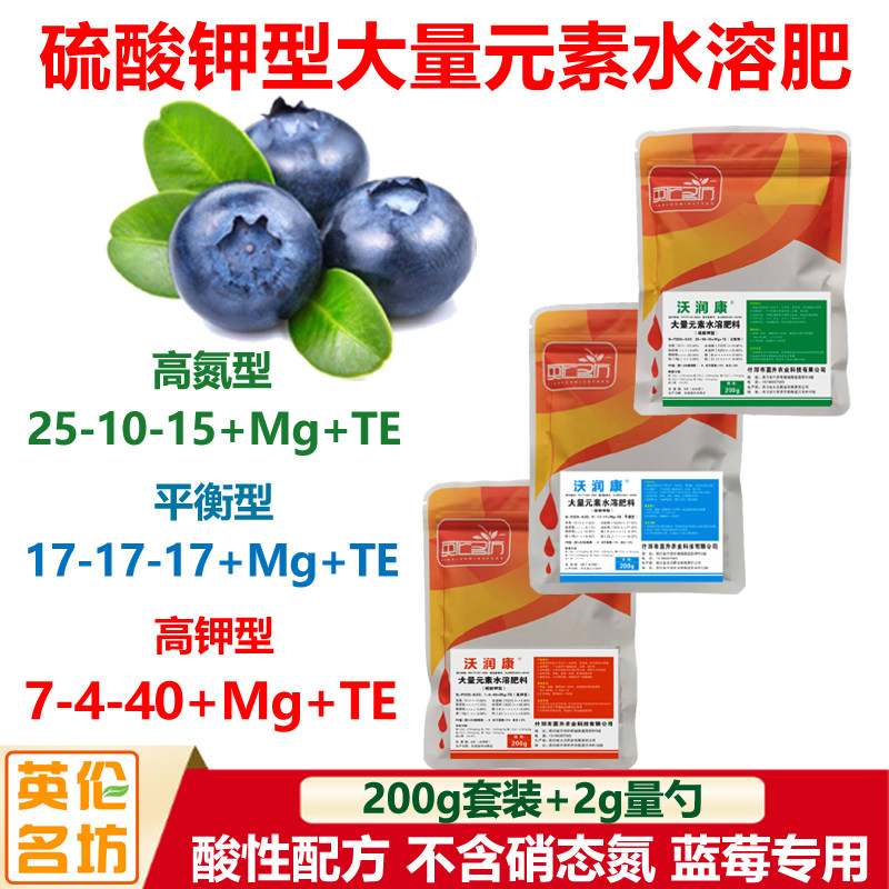 📚 沃润康蓝莓专用硫酸钾型大量元素水溶肥料酸性通用型高氮平衡高钾