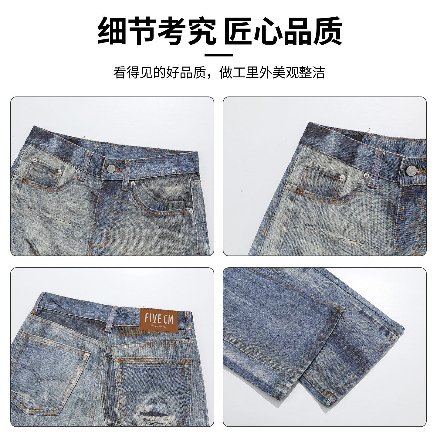 📚 New Bcfauae NB美式做旧破洞乞丐牛仔裤男女夏季时尚宽松长裤