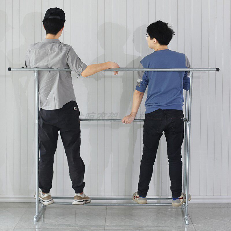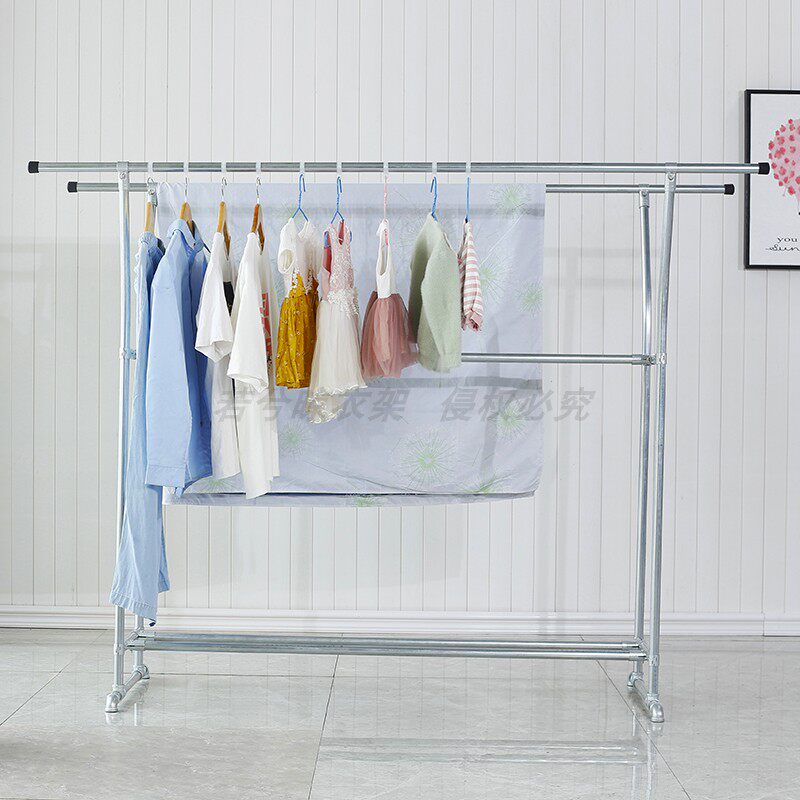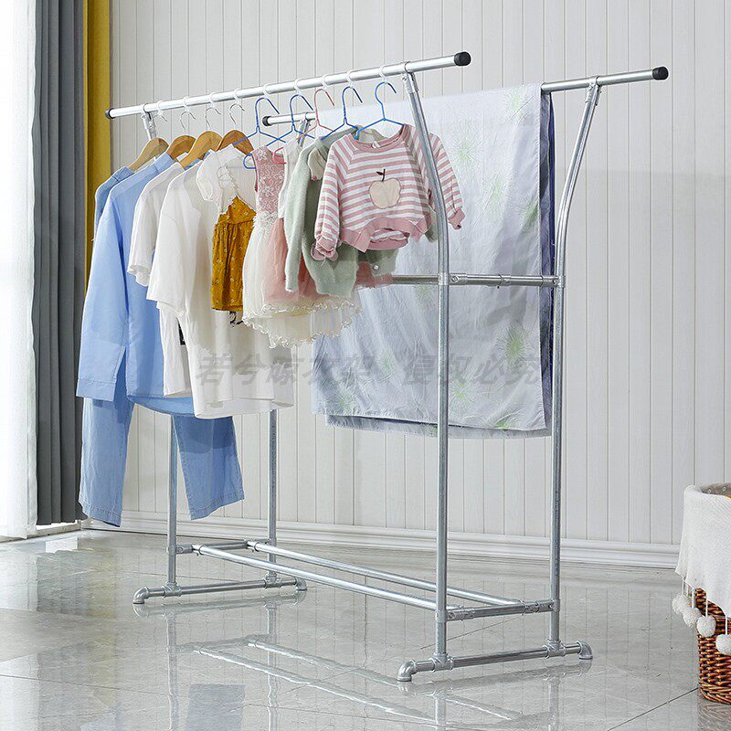 📚 家用稳固双层晾衣架镀锌钢管双面晾晒衣架别墅室内落地式挂衣杆