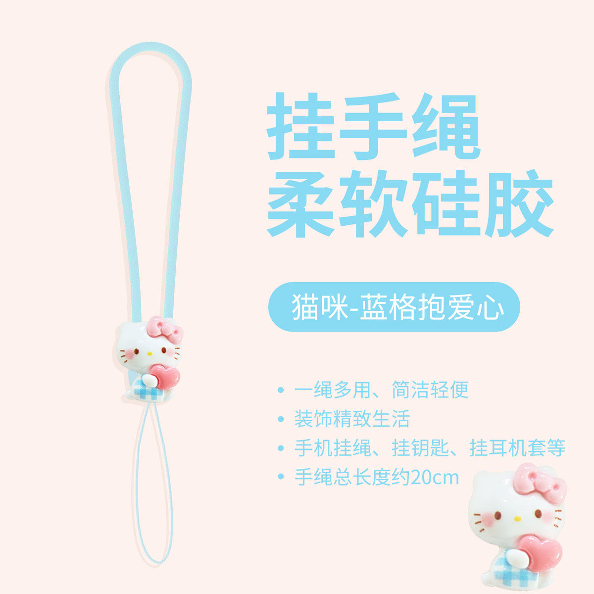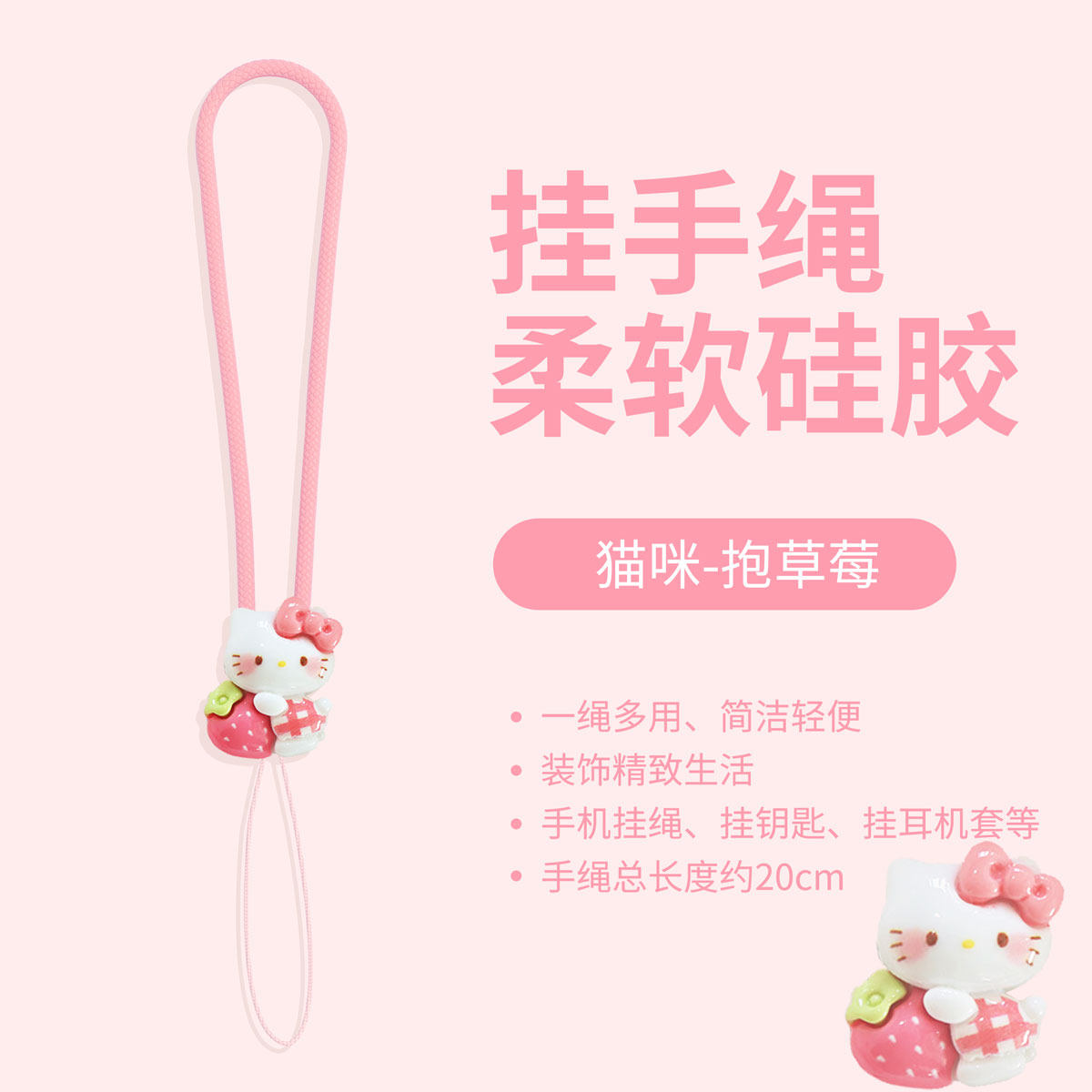 📚 可爱手机挂绳短硅胶腕带kt挂件u盘ccd相机钥匙耳机凯蒂猫链饰防丢