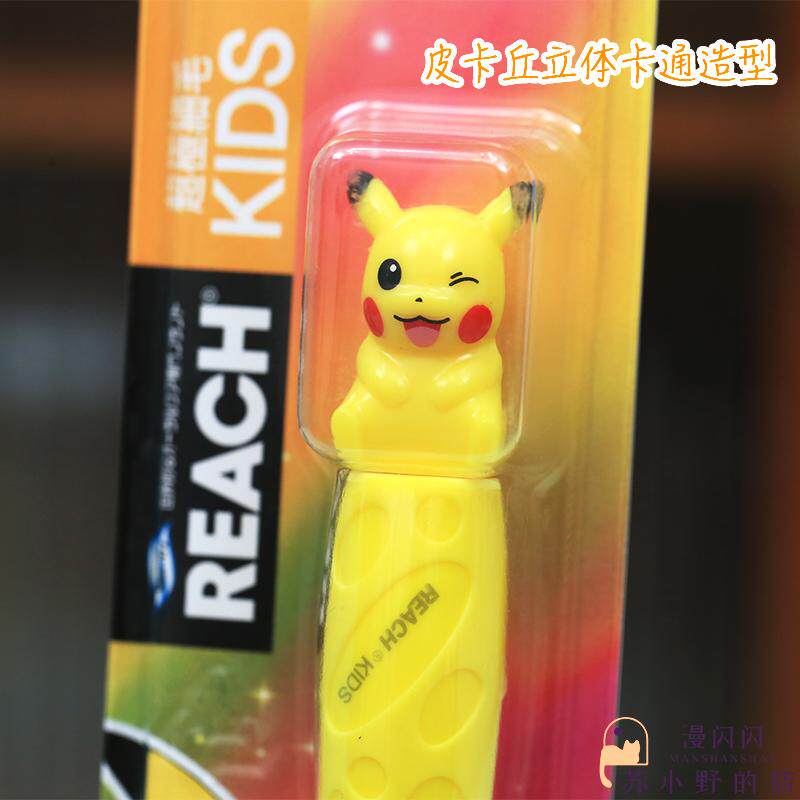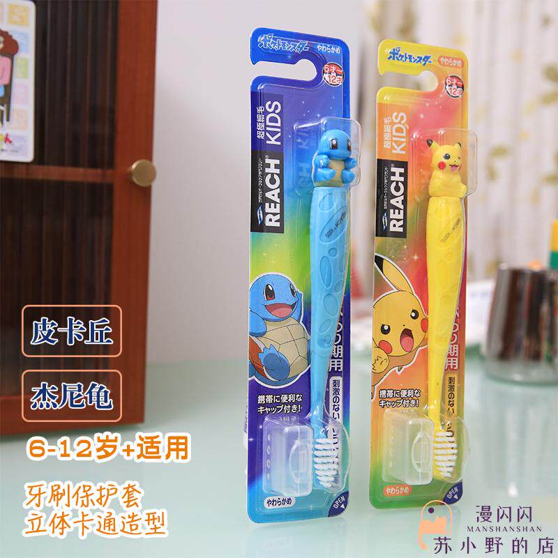 📚 日本正品购reach皮卡丘杰尼龟造型头幼儿童kids中软毛牙刷6-12岁