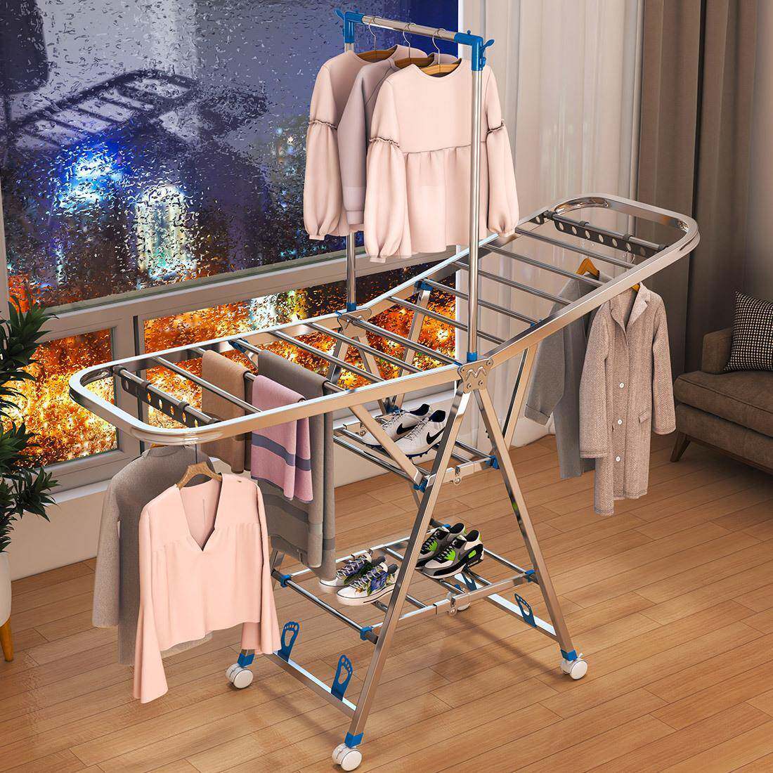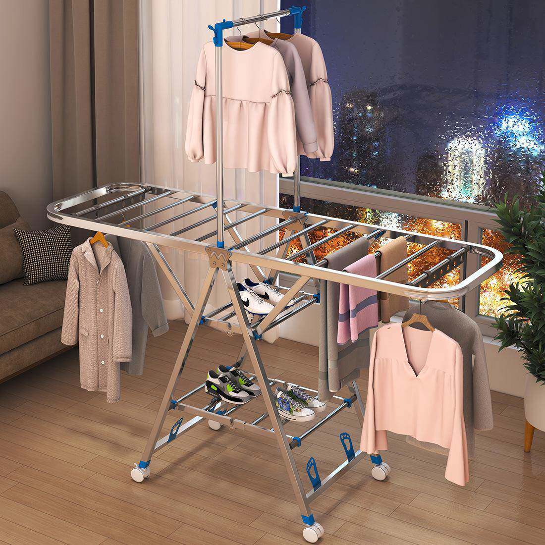 📚 不锈钢晾衣架折叠晒衣阳台婴儿挂衣服架子晒被子架可折叠省地