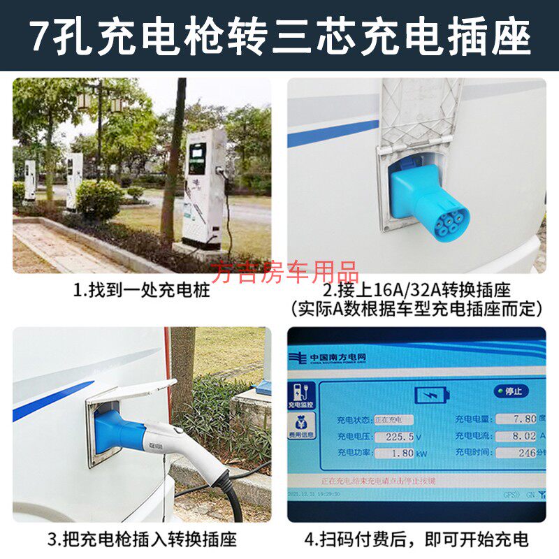 📚 房车充电桩转换插座 7孔充电枪三芯充电插头改装配件用品大全装备