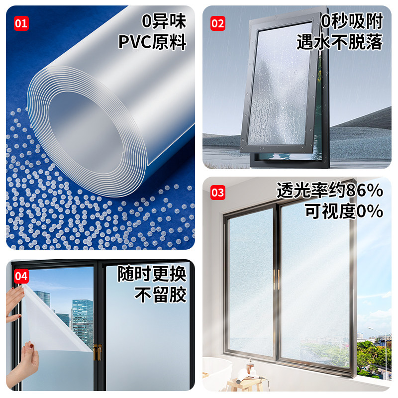 📚 玻璃门贴纸防窥遮光灰色油砂膜卫生间厕所窗户开灯不透人磨砂贴膜