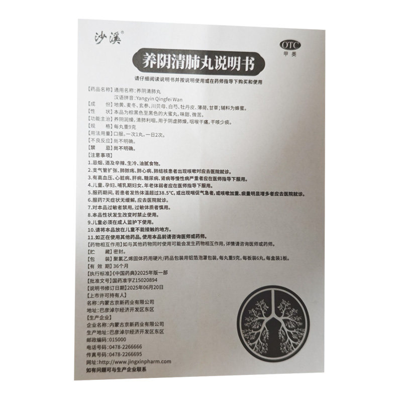 📚 沙溪养阴清肺丸9g*6丸/盒