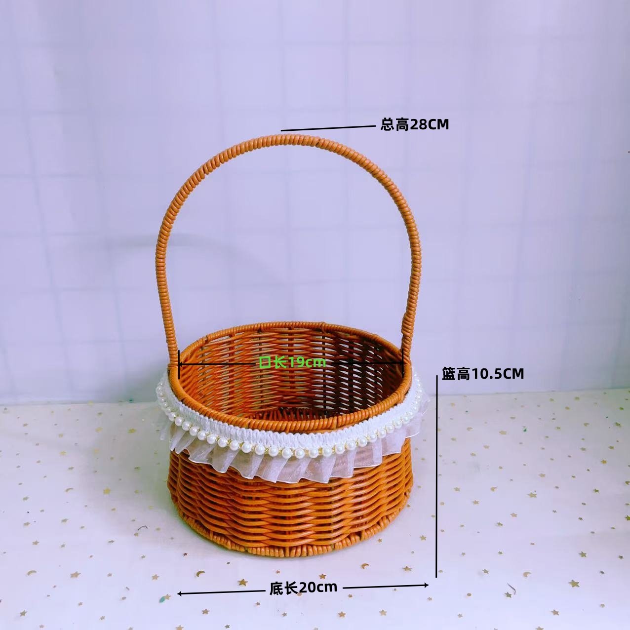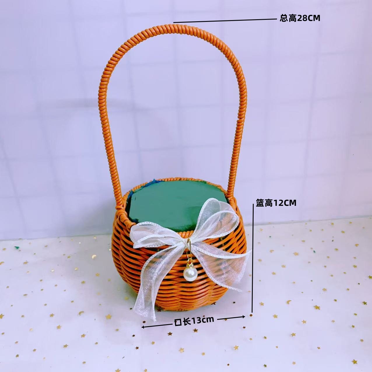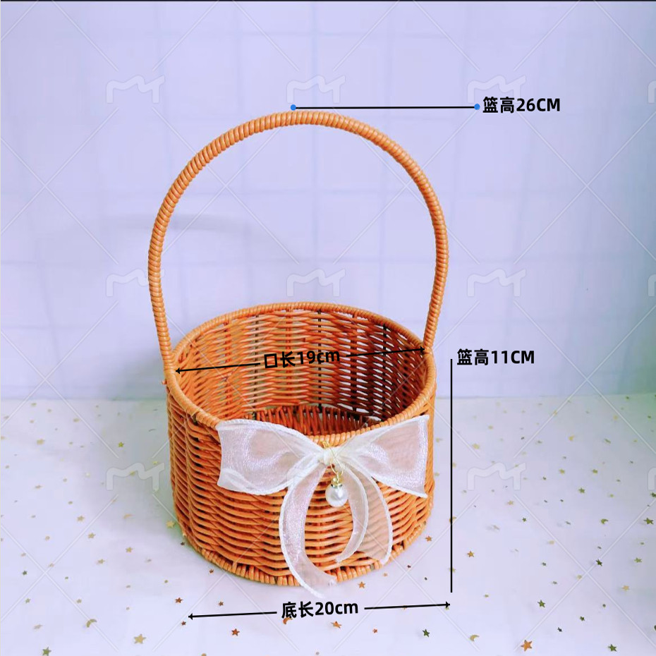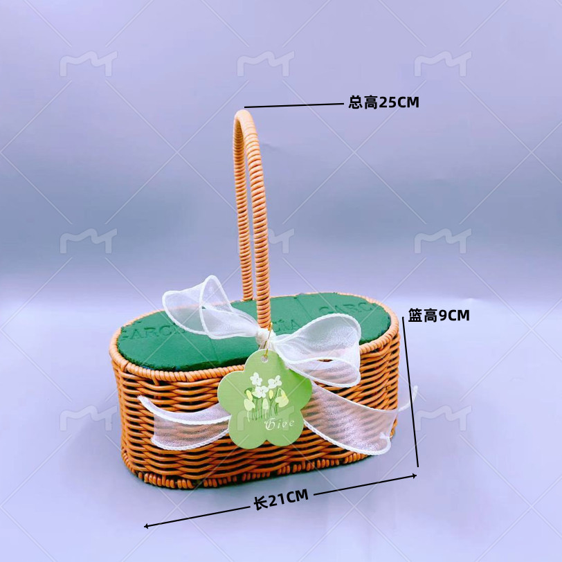 📚 仿藤编手提花篮铁艺造型鲜花绿植篮子手工编织小花篮客厅装饰摆件