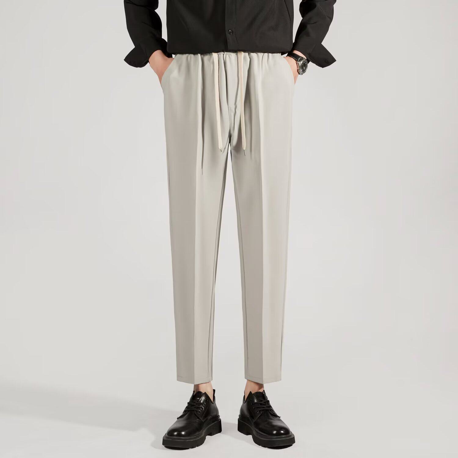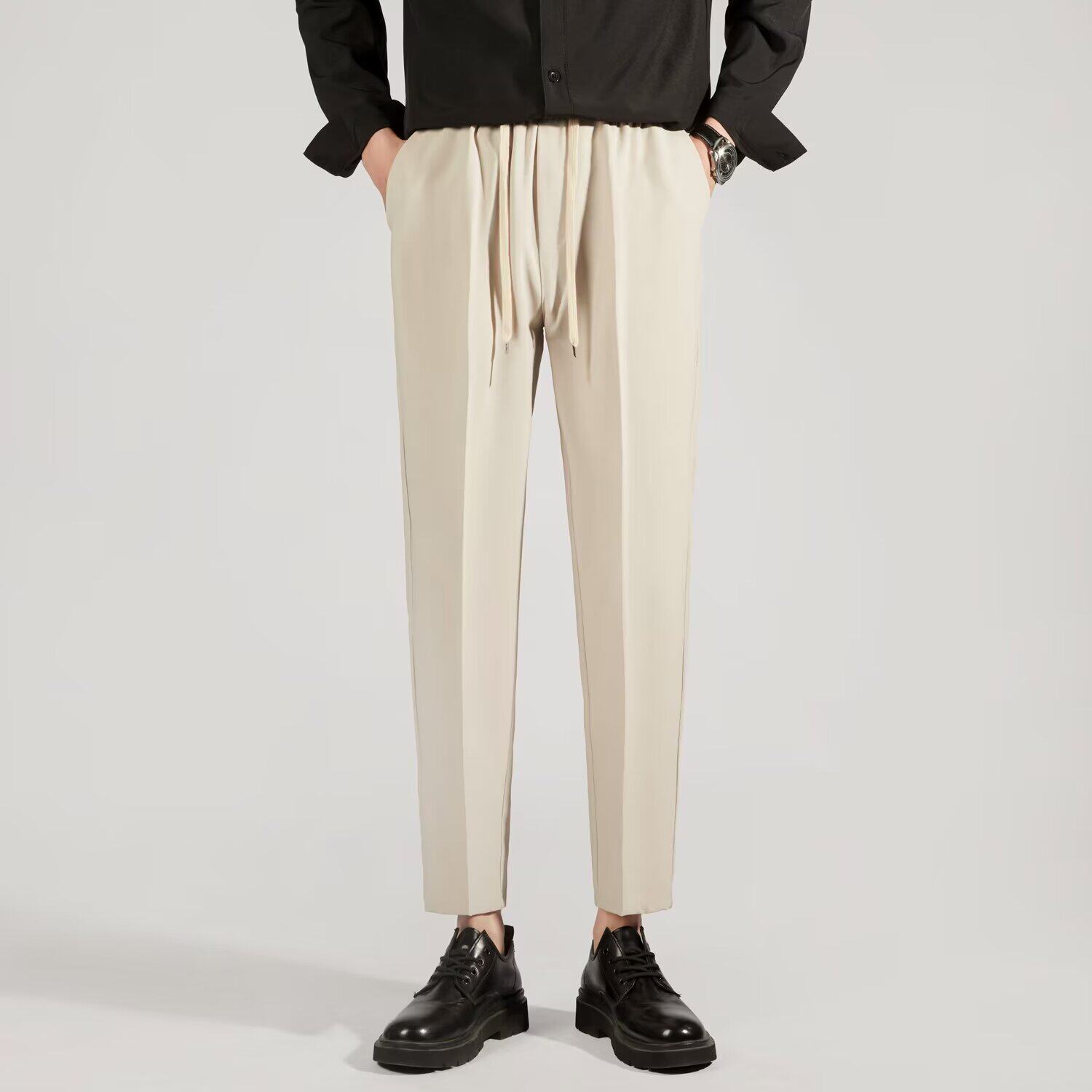 📚 韩版系绳小西裤男士修身直筒裤垂感春秋款休闲裤九分西装裤子男生