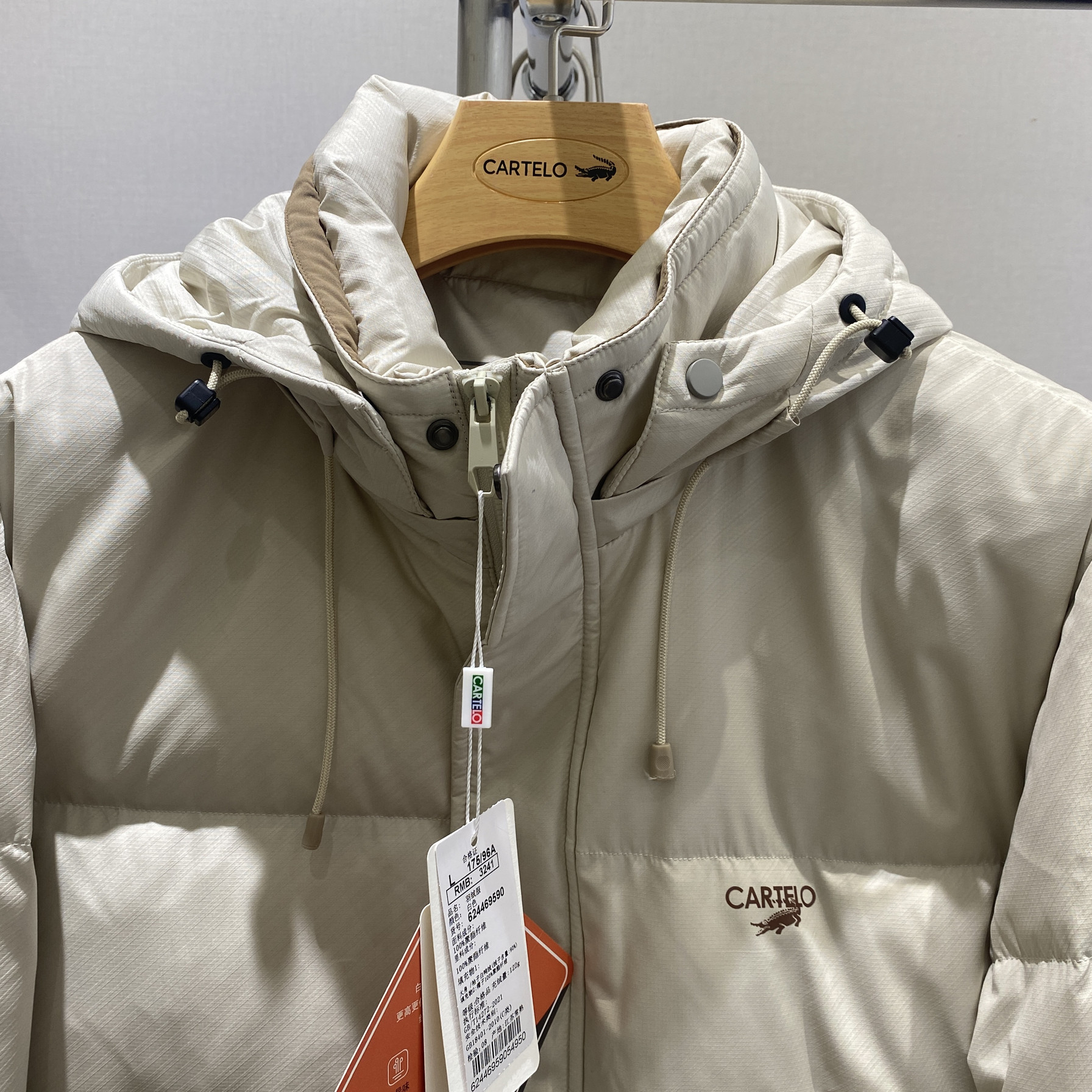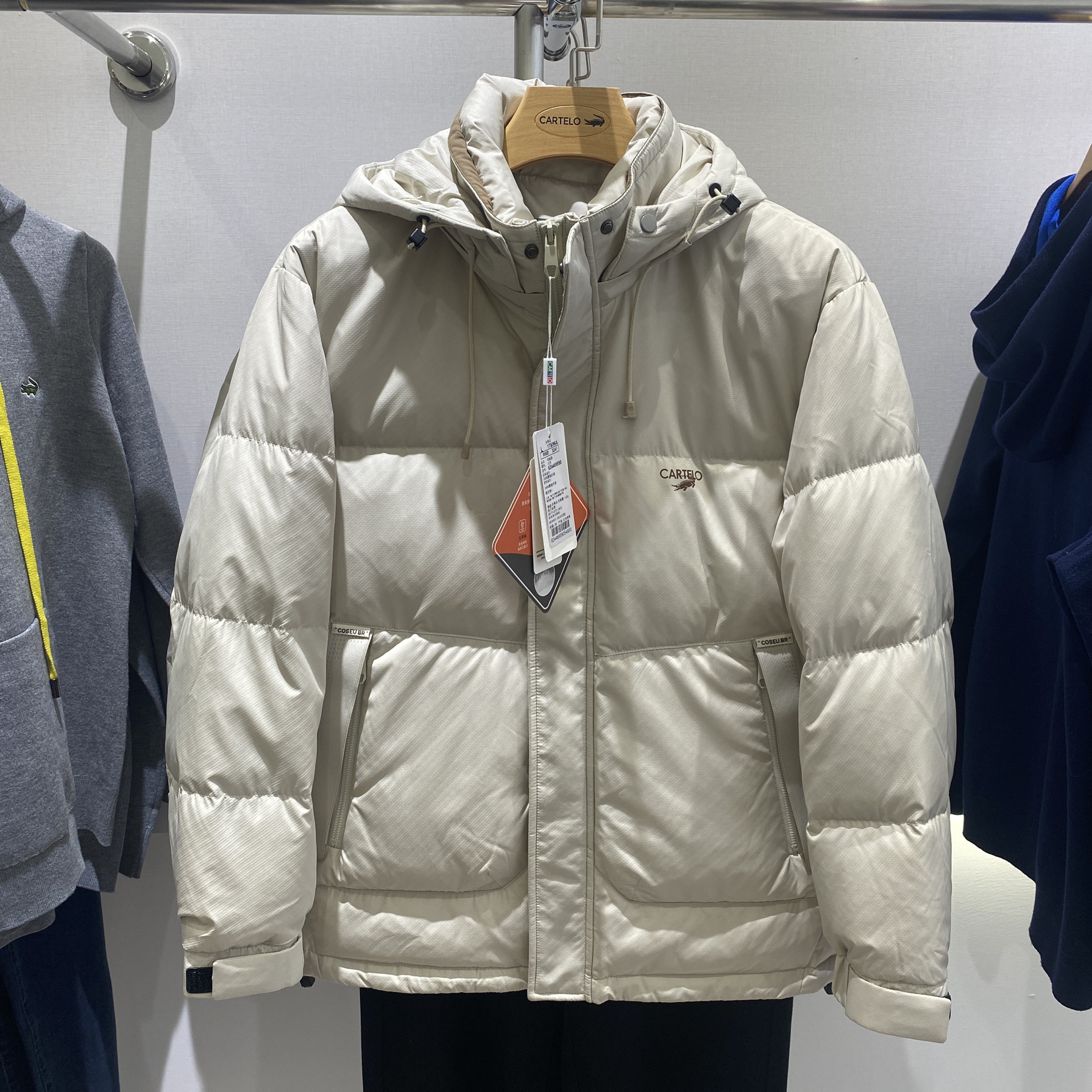 📚 卡帝乐鳄鱼男士连帽羽绒服白色拉链保暖外套2024年新款白鸭绒时尚