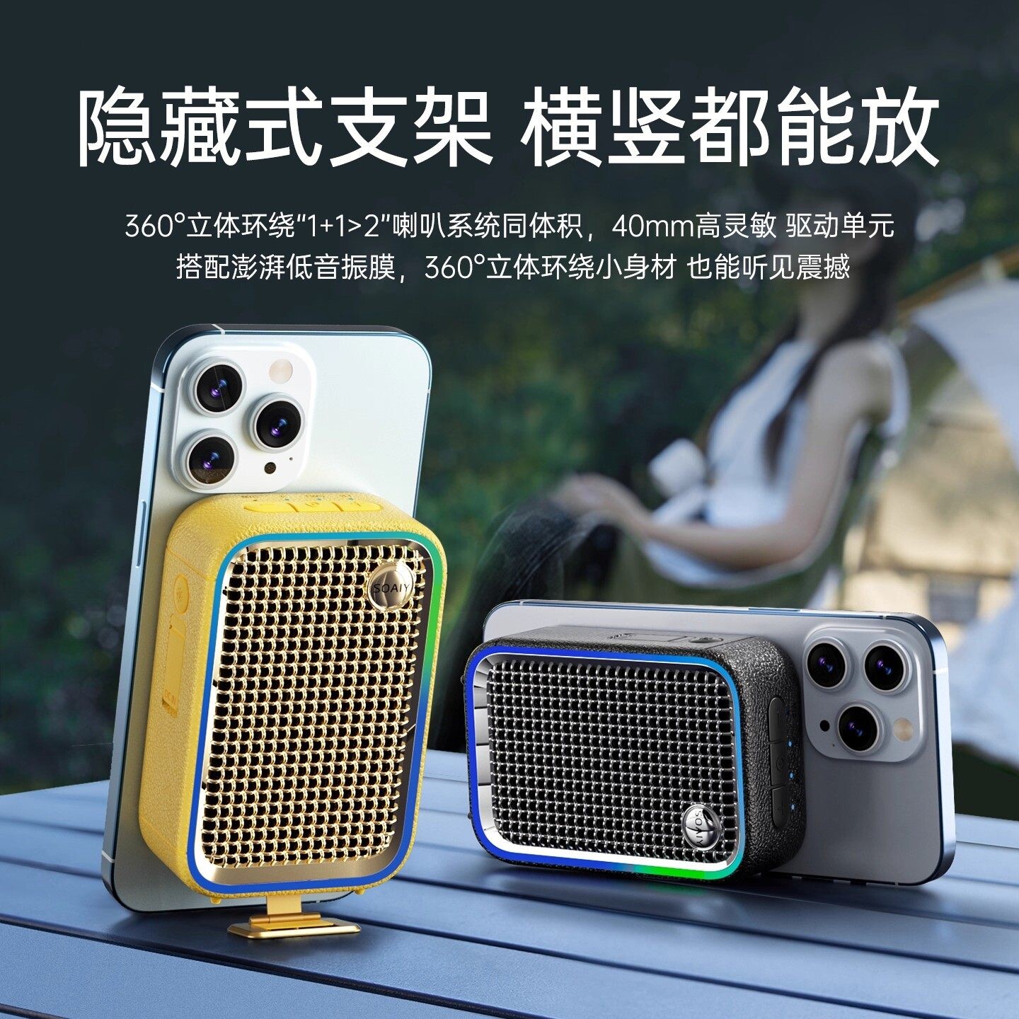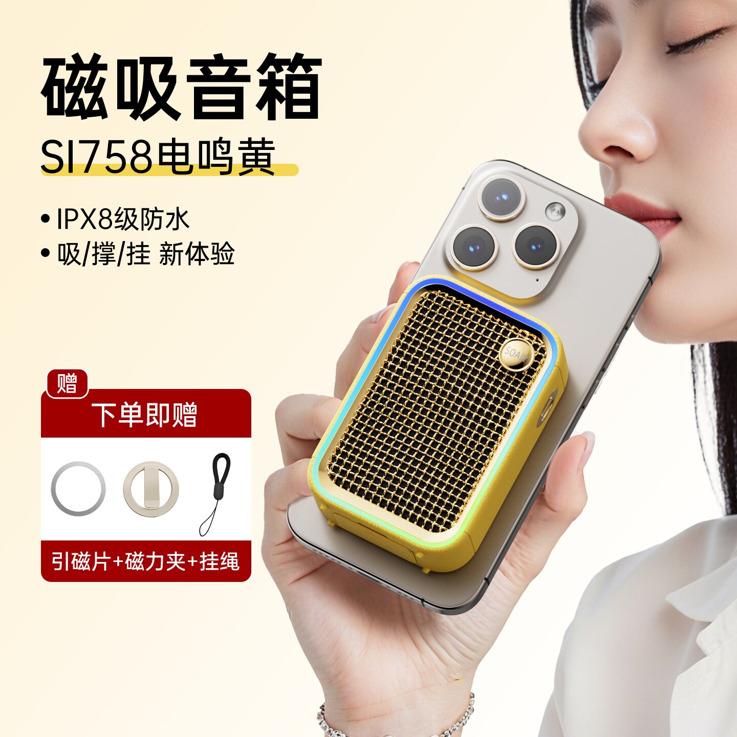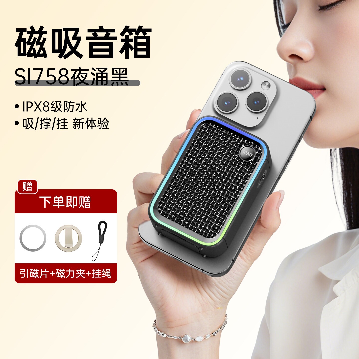 📚 索爱758 小方块磁吸音响防水浴室蓝牙便携式高音质户外低音炮无线