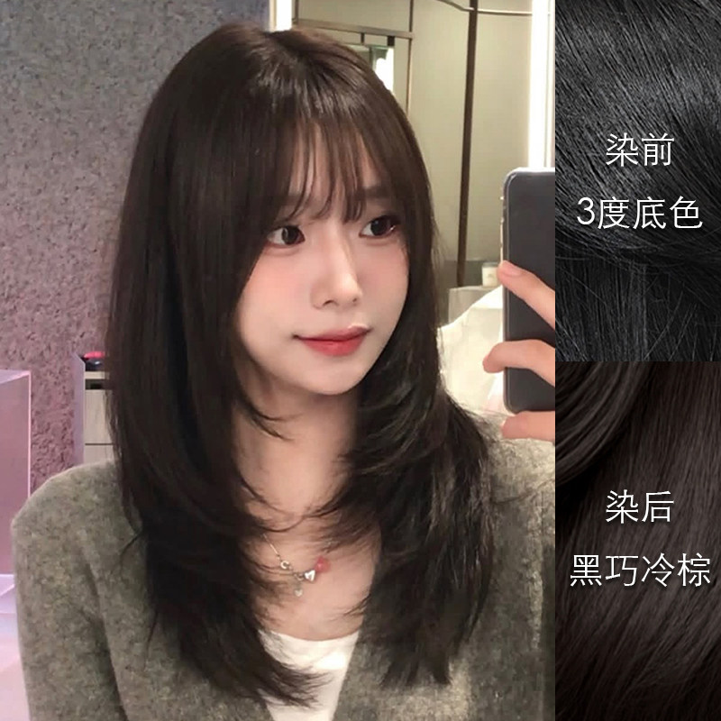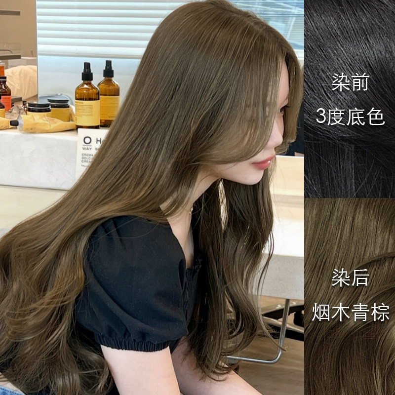 📚 里粒美发馆染发膏冷茶亚麻植物染发剂显白流行色不刺激棕色男女