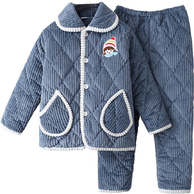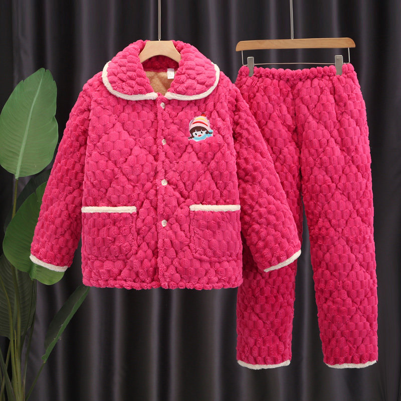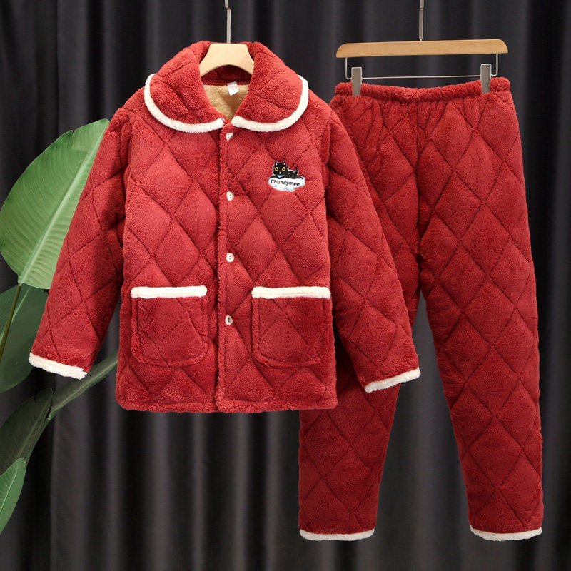 📚 秋冬天夹棉三层加厚女款珊瑚绒睡衣女士法兰绒冬季可爱家居服棉袄