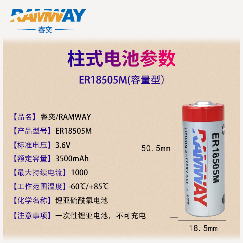 📚 RAMWAY睿奕ER18505M 3.6V锂电池适用三川旌旗IC卡智能水表温控器