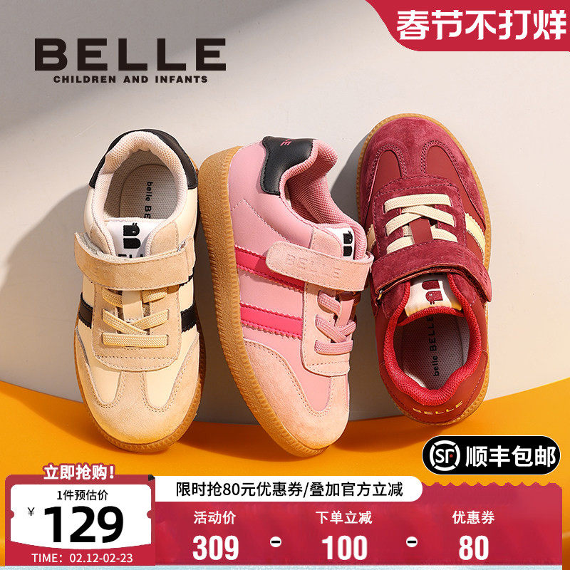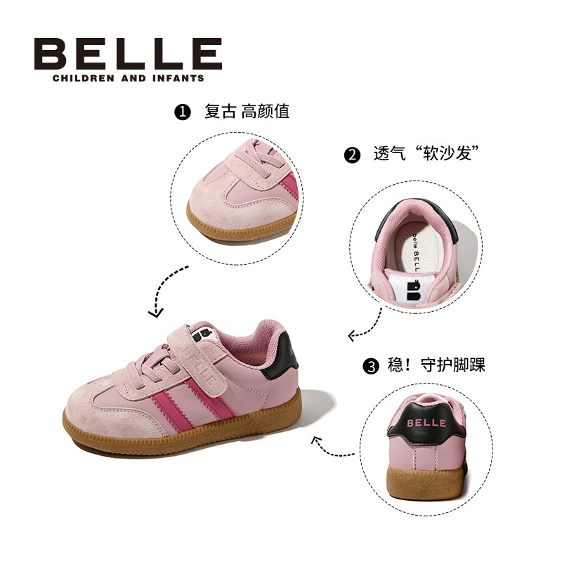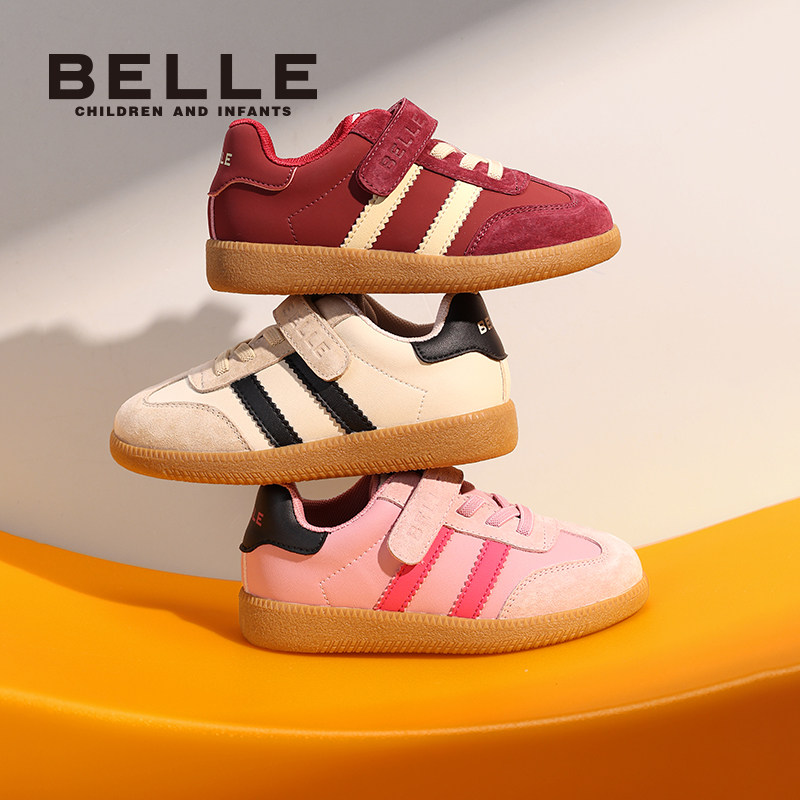 📚 百丽童鞋女童复古板鞋秋季新款男童运动鞋中大童德训鞋儿童t头鞋