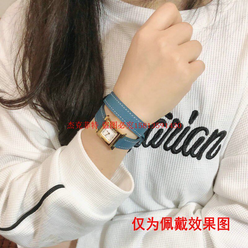 📚 H款21女表两圈缠绕长表带Epsom牛皮荔枝纹真皮手表带16