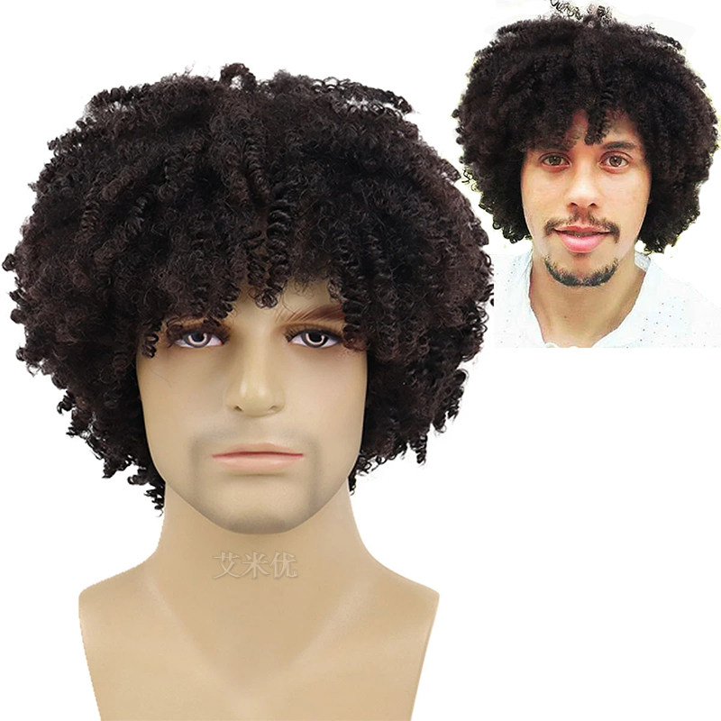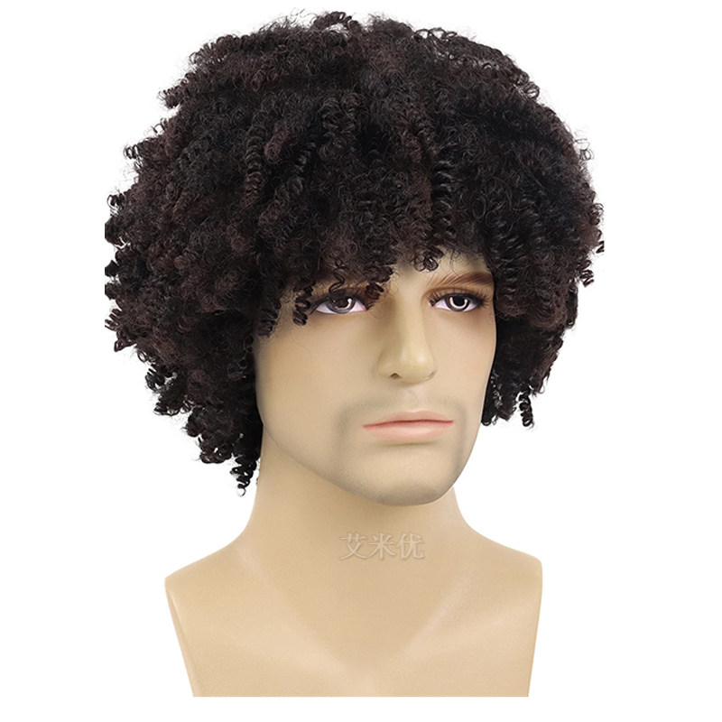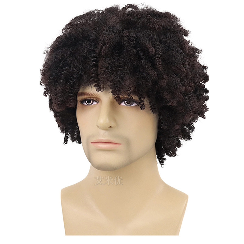 📚 男士假发小卷嘻哈风Hip hop鸡窝头短卷发黑人化纤头套蓬松爆炸头