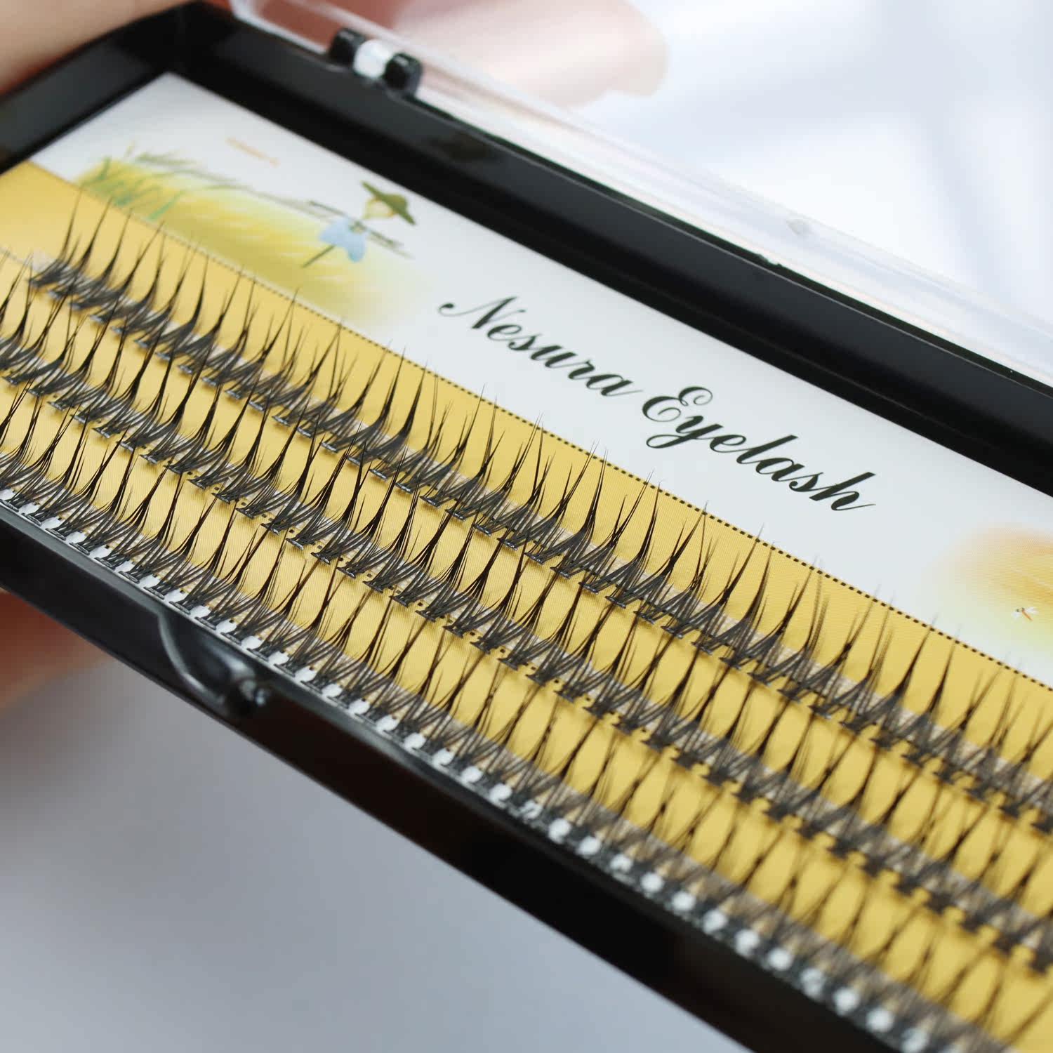 📚 L型假睫毛鱼尾稻草人单株簇浓密自然分段式肿眼泡单眼皮卷翘睫毛