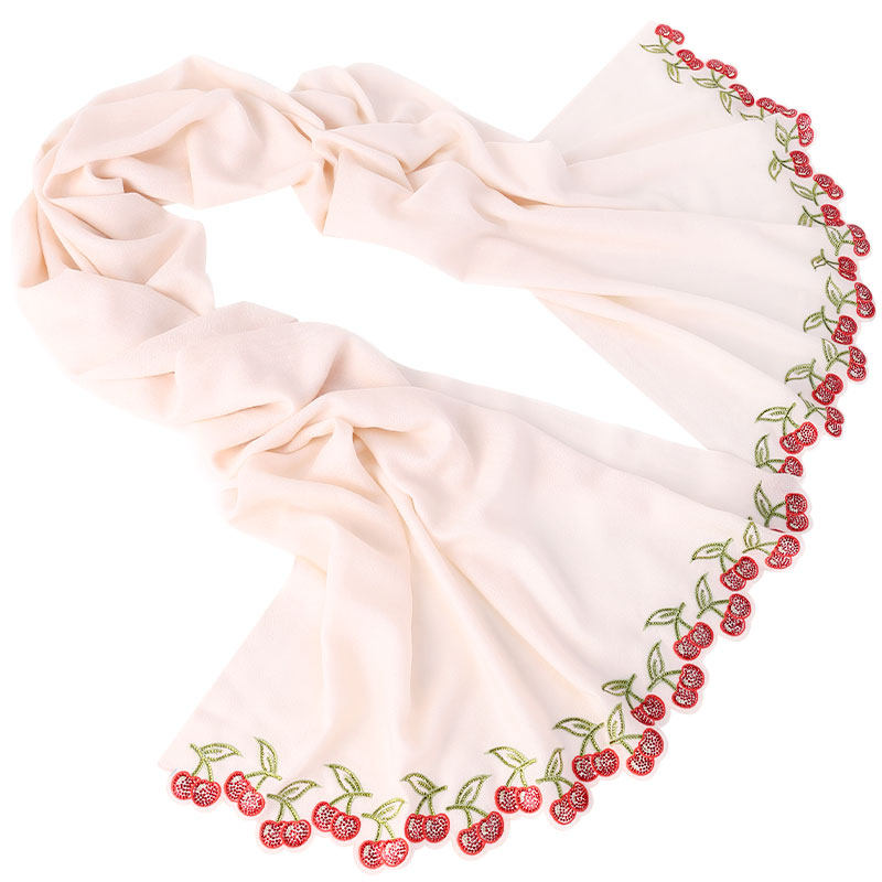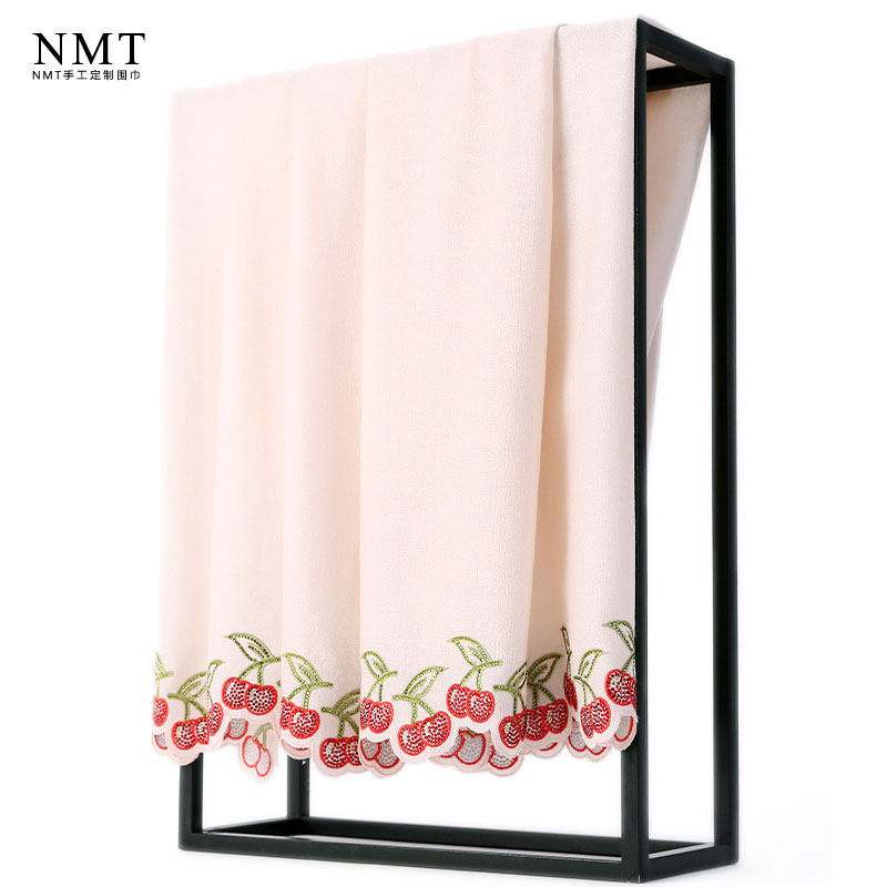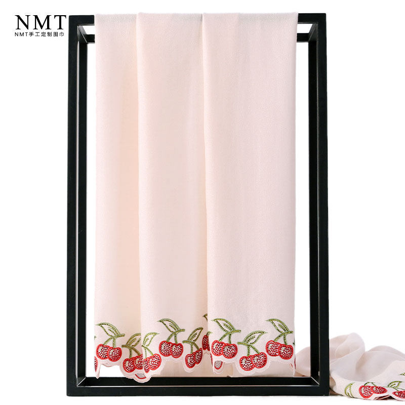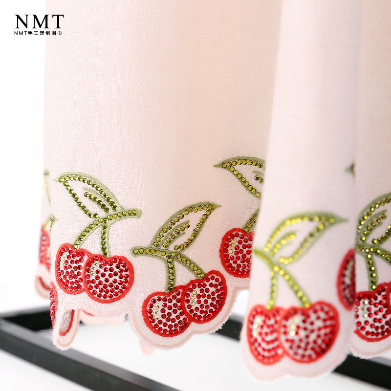 📚 日系减龄pashmina羊绒围巾女裸粉色手工樱桃烫钻冬季出行保暖披肩
