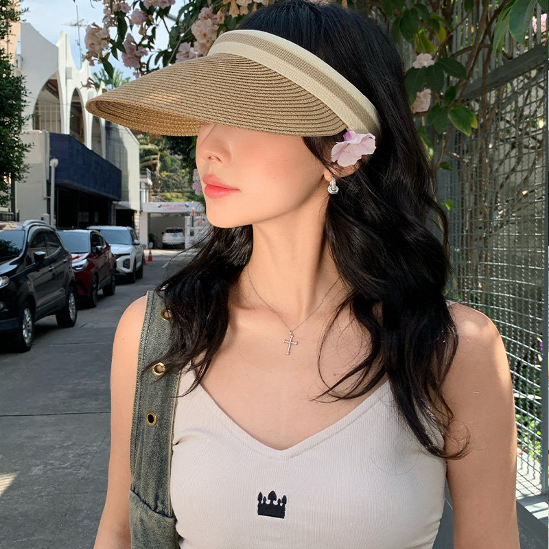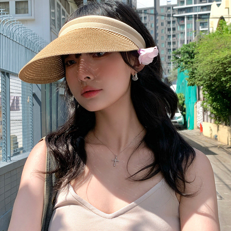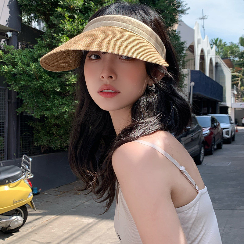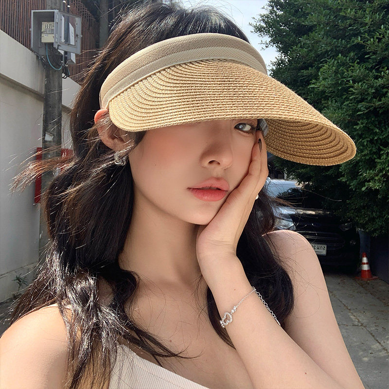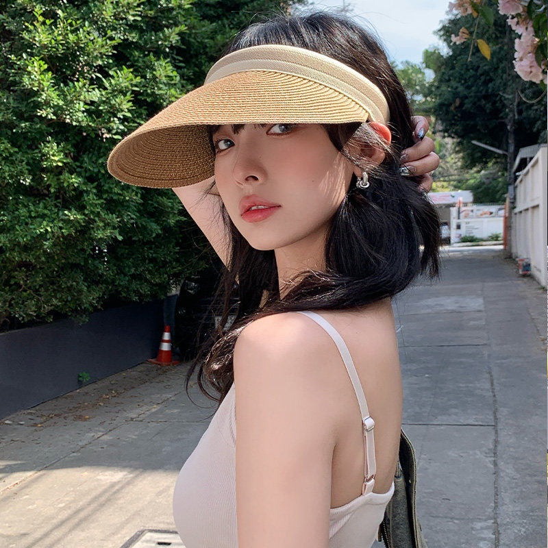 📚 遮阳草编空顶帽女夏季大帽檐太阳帽子海边沙滩防紫外线显脸小草帽