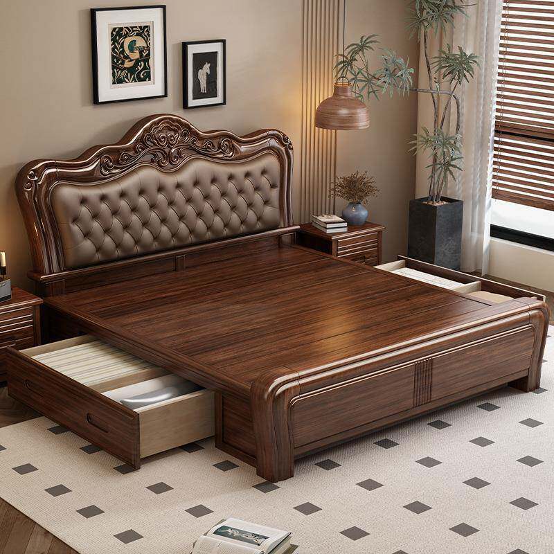 📚 实木主卧大床2米x2米2软包加厚加粗双人床高端大气1米5的床加床垫