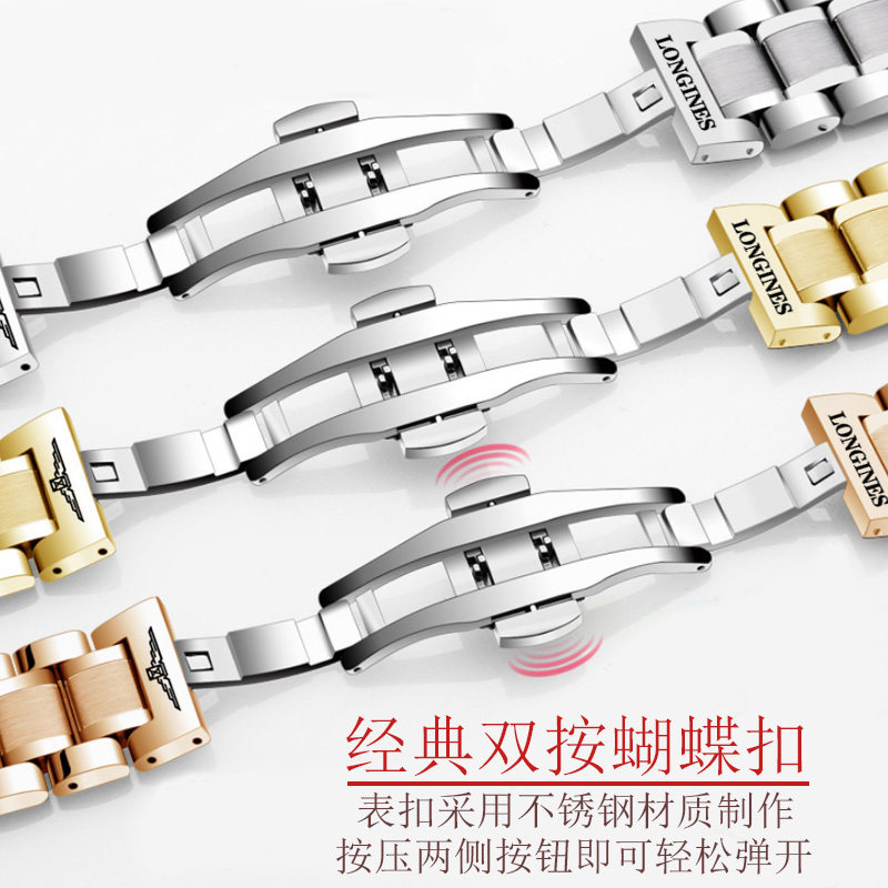 📚 适配浪琴名匠手表带钢带月相八针实心精钢L2.628 L2.909表链20mm