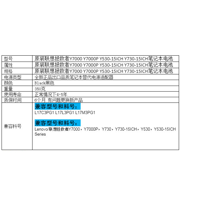📚 现货联想拯救者 Y7000 Y7000P Y530-15ICH L17M3PG1笔记本电池
