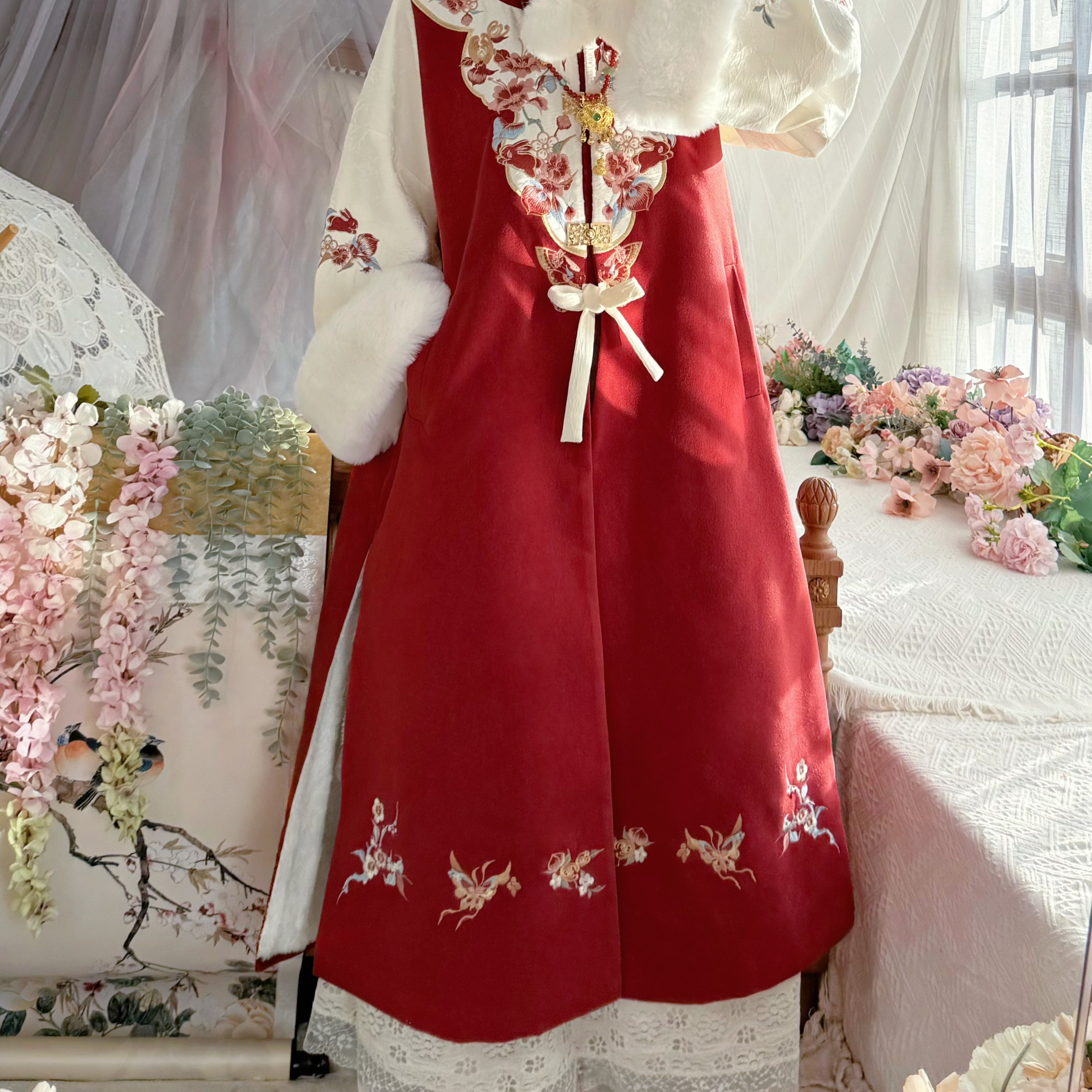📚 荟萃阁原创汉服女 山茶映兔 立领短衫明制长比甲马面裙厚款秋冬