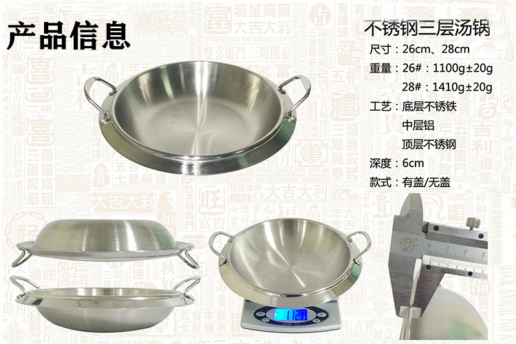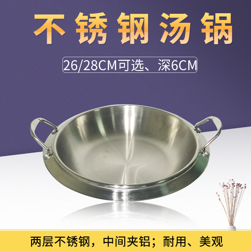 📚 韩式不锈钢汤锅带把手26/28cm煮锅三层汤锅家用商用厨房烹饪锅具