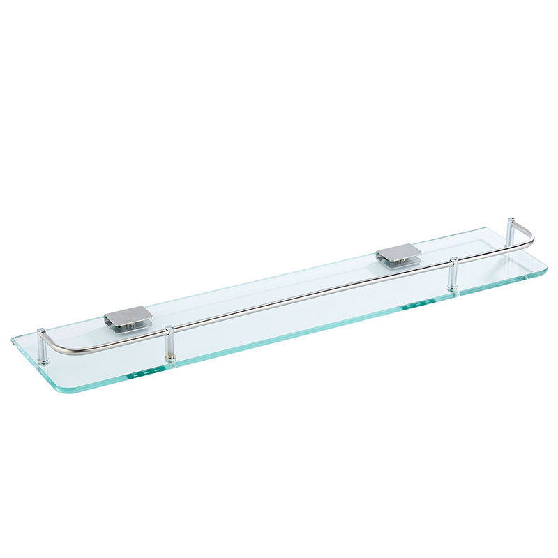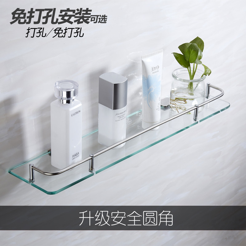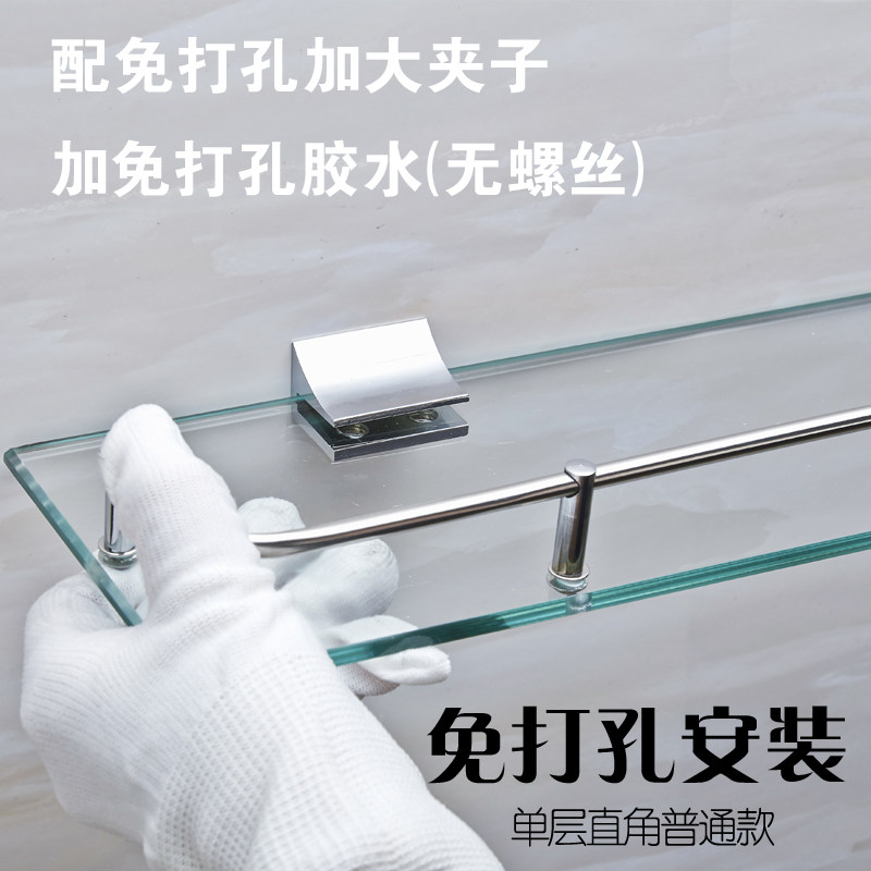 📚 免打孔浴室用品长方形不锈钢玻璃置物架卫生间厕所化妆单层托盘