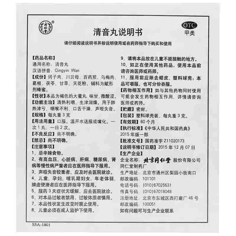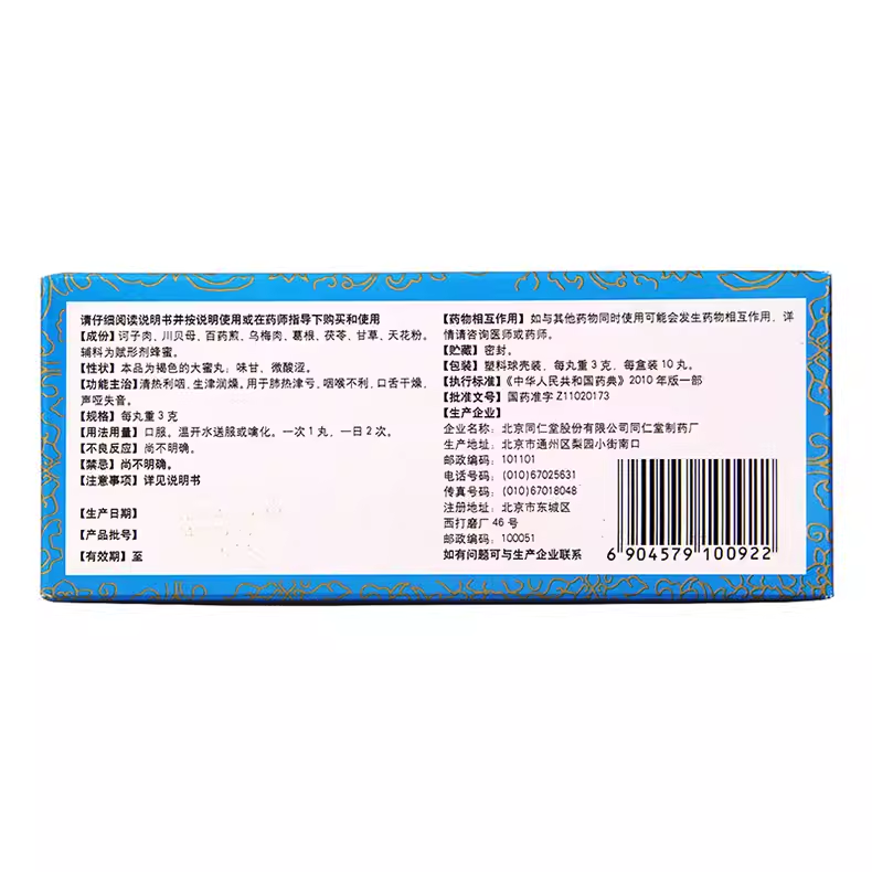 📚 同仁堂清音丸 3g*10丸用于肺热津亏咽喉不利口舌干燥声哑失音清热