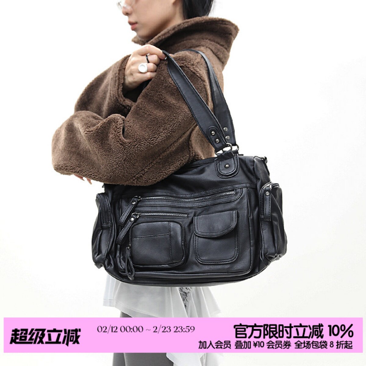 📚 简着 /原创 里斯林肯多口袋拉链辣妹机车包黑色y2k潮酷单肩斜挎包